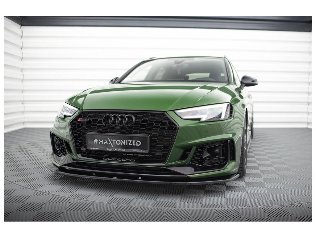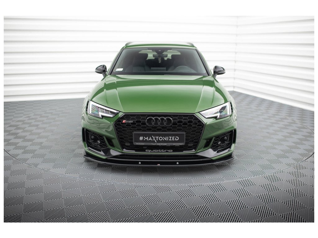 Maxton Design spoiler pod přední nárazník ver.1 pro vozidlo Audi RS4 B9 . Povrchová úprava spoileru černý lesklý plast ABS.