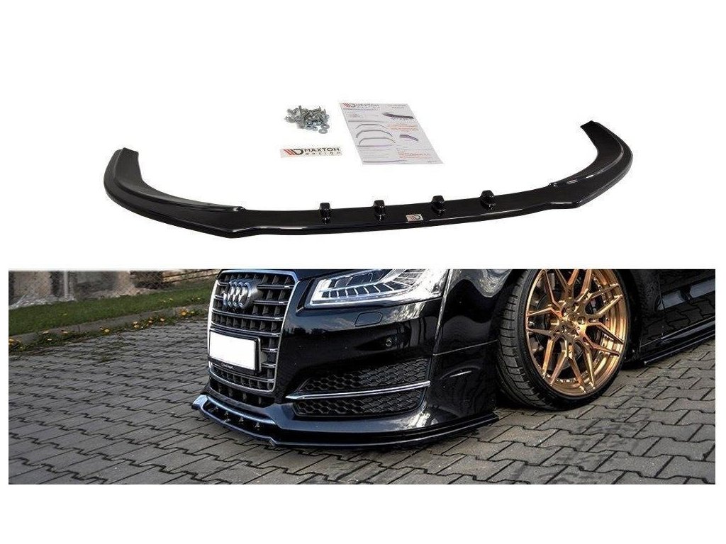 Maxton Design spoiler pod přední nárazník ver.1 pro vozidlo Audi S8 D4 FL . Povrchová úprava spoileru černý lesklý plast ABS.