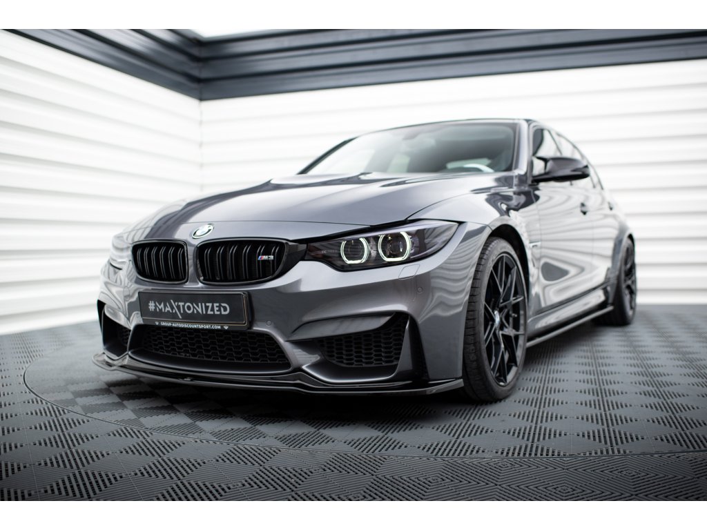 Maxton Design spoiler pod přední nárazník ver.1 pro vozidlo BMW M3 F80 . Povrchová úprava spoileru černý lesklý plast ABS.