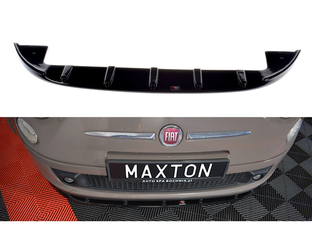 Maxton Design spoiler pod přední nárazník ver.1 pro vozidlo Fiat 500 . Povrchová úprava spoileru carbon-Look.