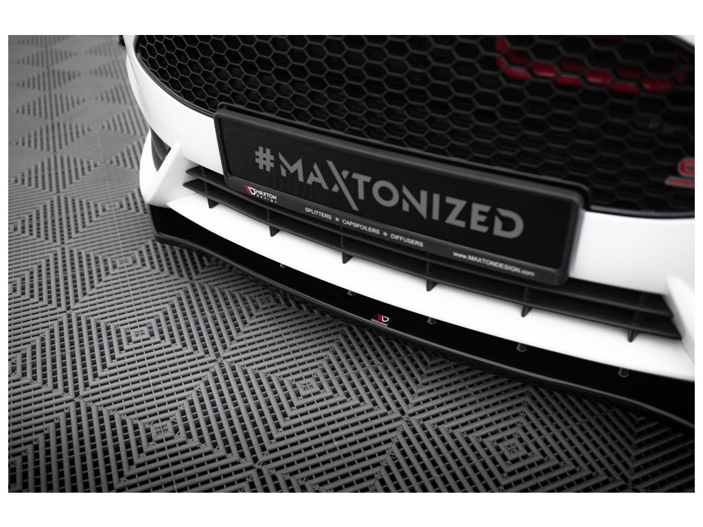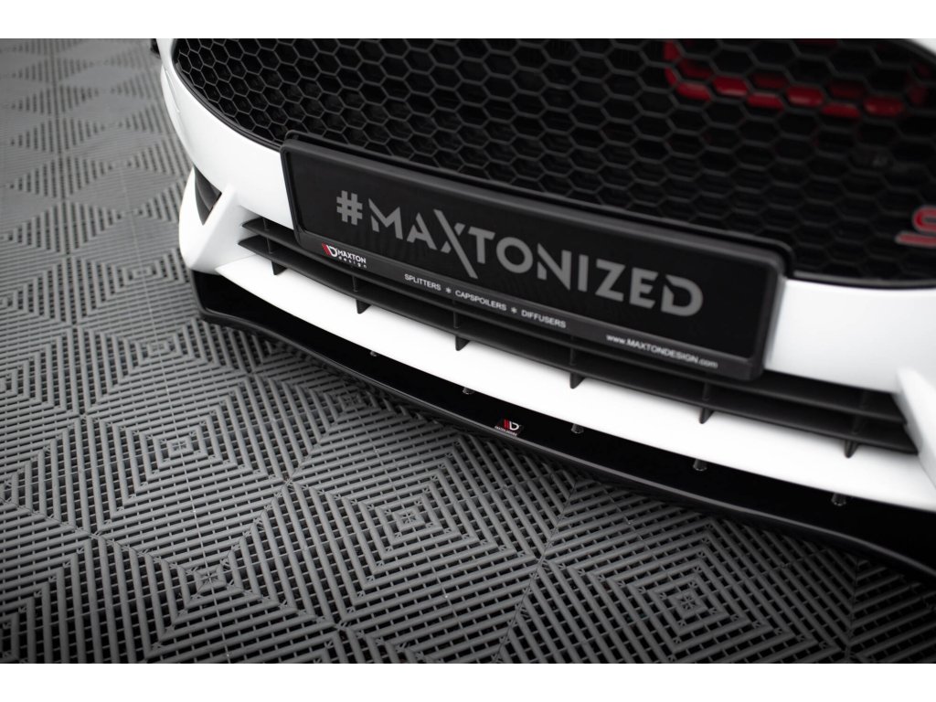 Maxton Design spoiler pod přední nárazník ver.1 pro vozidlo Ford Fiesta ST Mk7 Facelift. Povrchová úprava spoileru černý lesklý plast ABS.