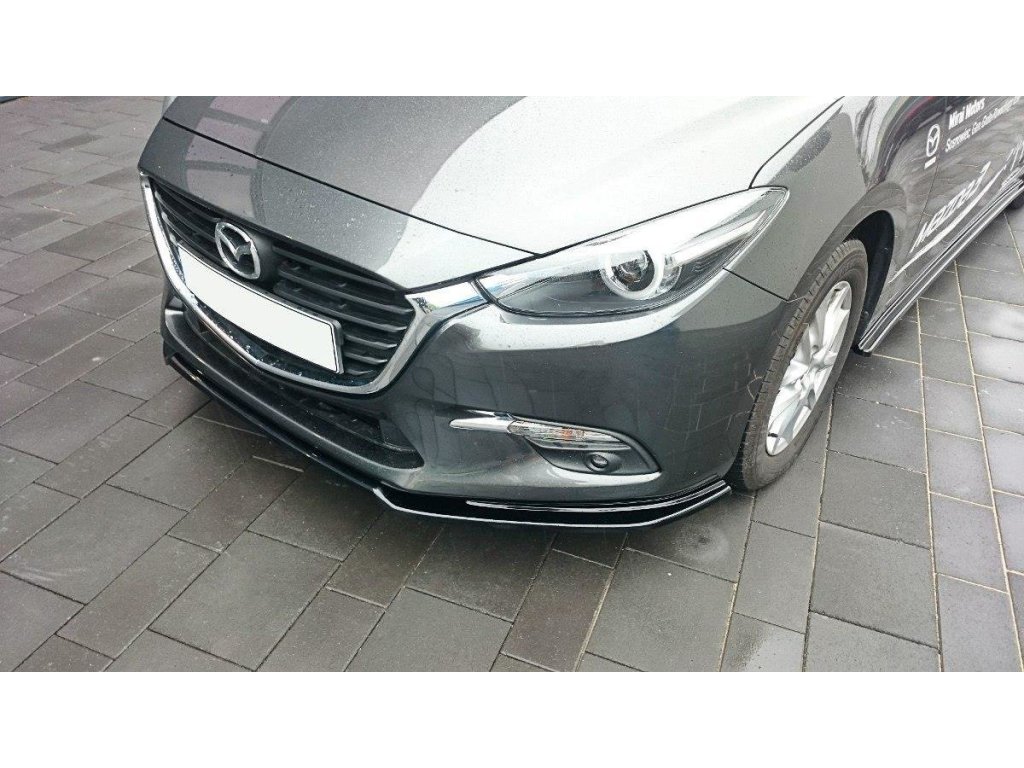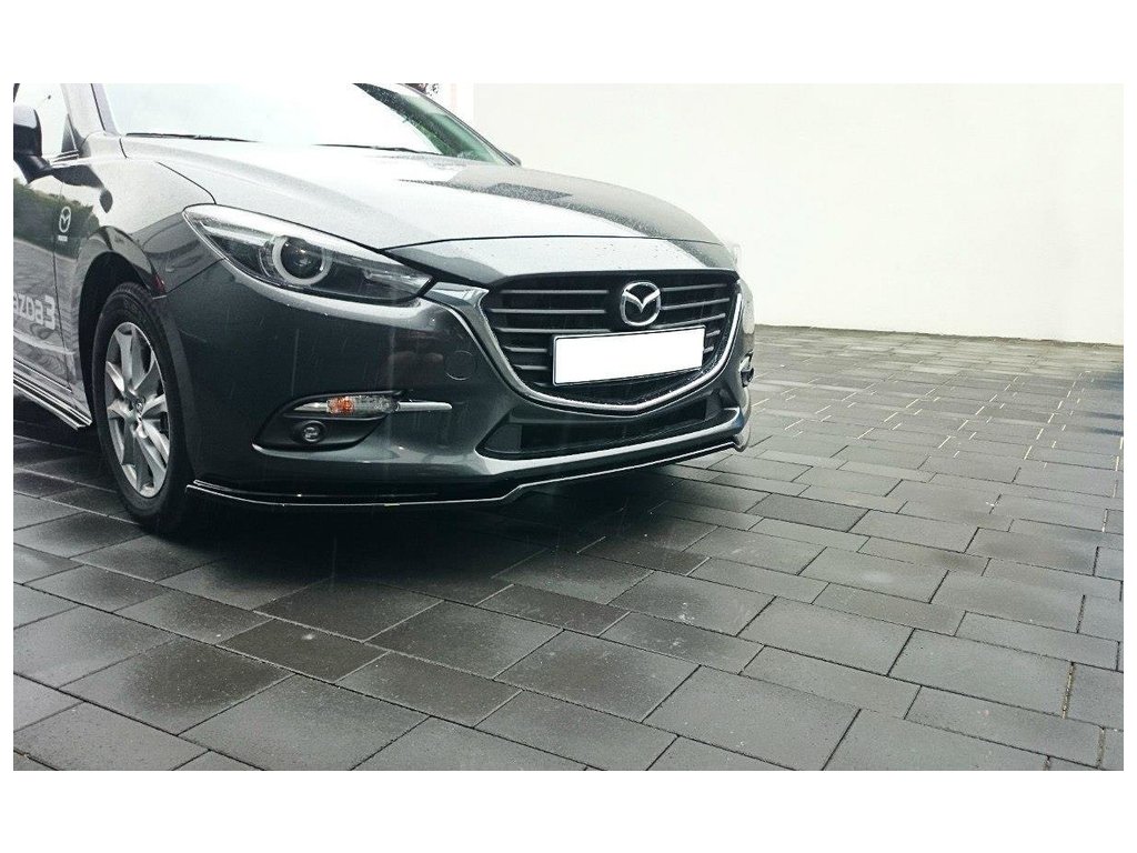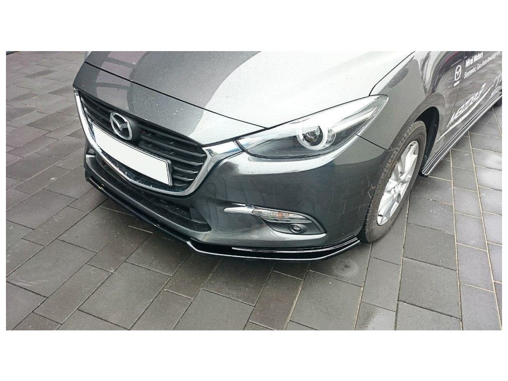 Maxton Design spoiler pod přední nárazník ver.1 pro vozidlo Mazda 3 Mk3 Facelift . Povrchová úprava spoileru černý lesklý plast ABS.