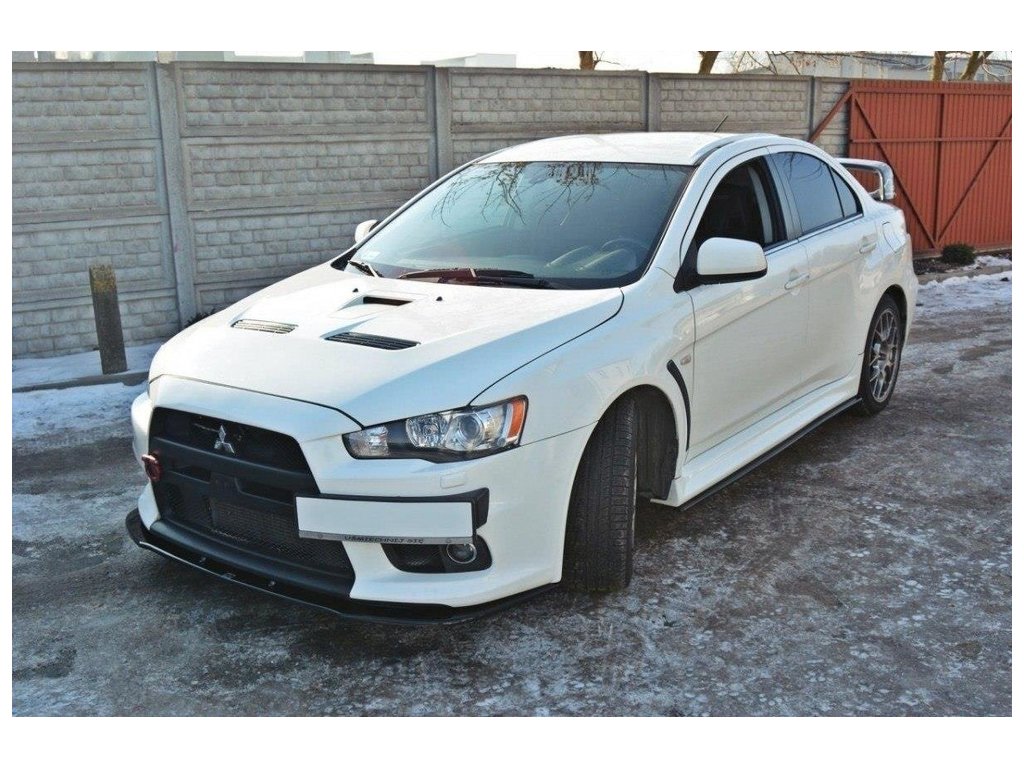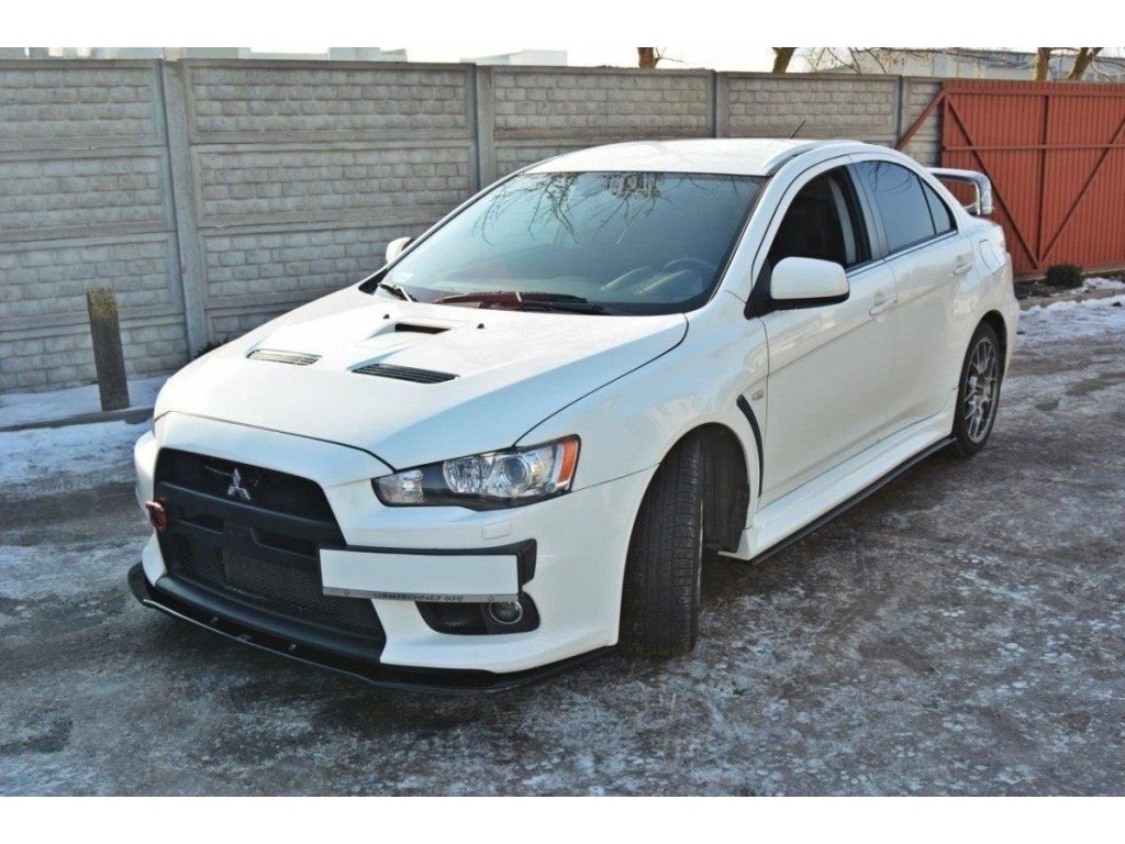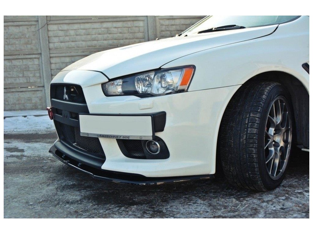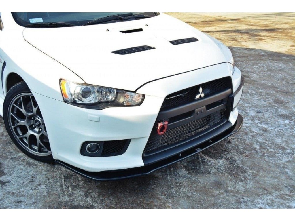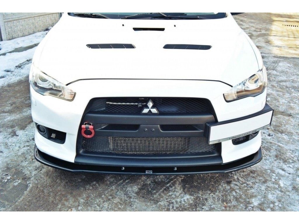 Maxton Design spoiler pod přední nárazník ver.1 pro vozidlo Mitsubishi Lancer Evo Mk10 . Povrchová úprava spoileru černý lesklý plast ABS.
