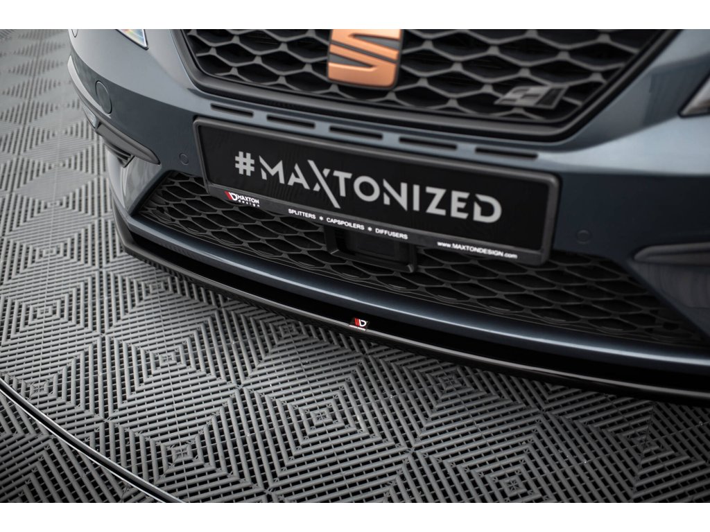 Maxton Design spoiler pod přední nárazník ver.1 pro Seat Leon Cupra Mk3 Facelift, černý lesklý plast ABS
