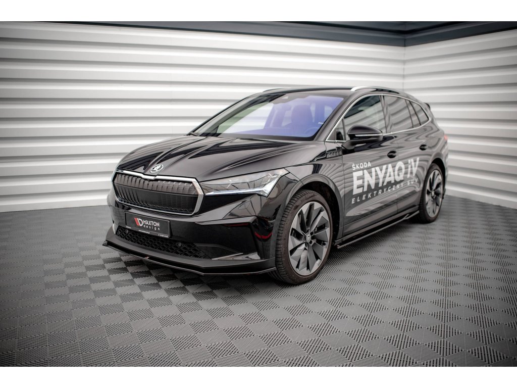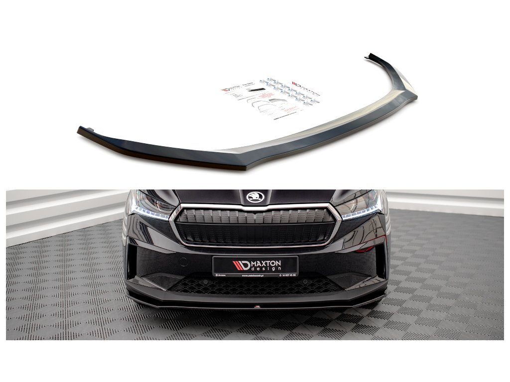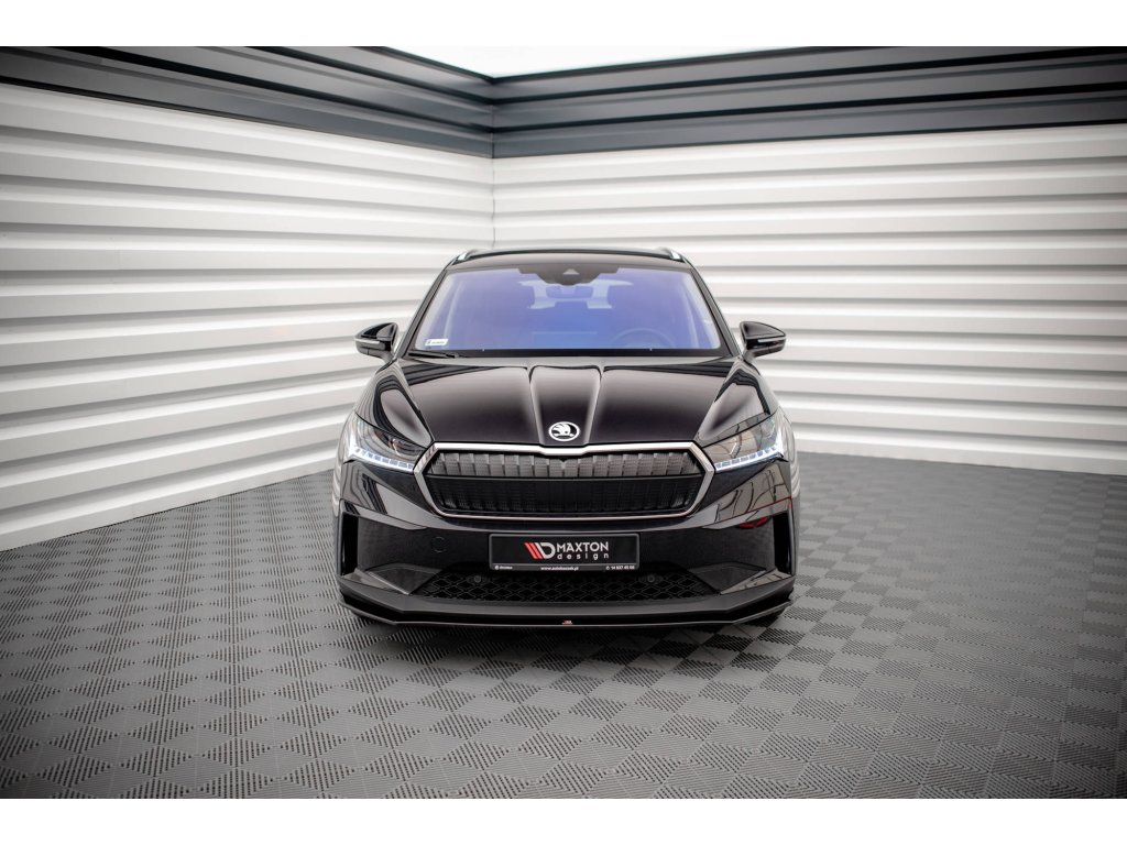 Maxton Design spoiler pod přední nárazník ver.1 pro vozidlo Škoda Enyaq iV Mk1 . Povrchová úprava spoileru carbon-Look.