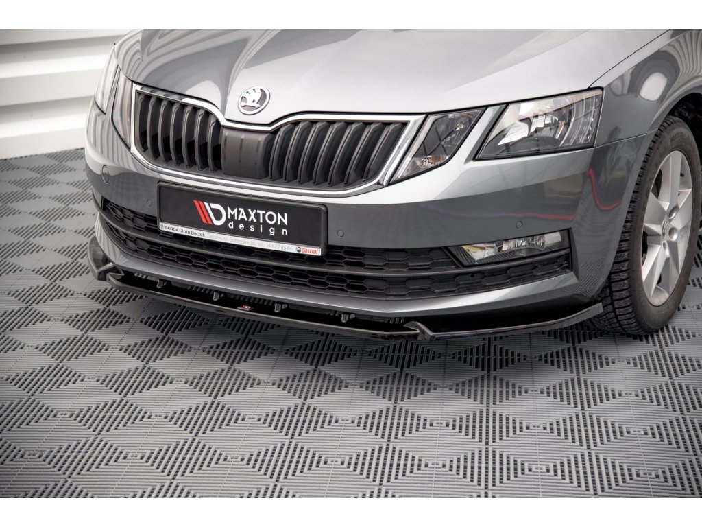 Maxton Design spoiler pod přední nárazník ver.1 pro Škoda Octavia Mk3 Facelift, černý lesklý plast ABS