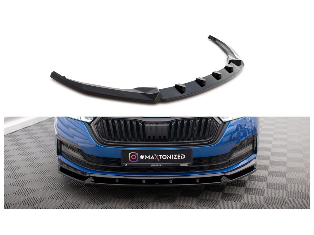 Maxton Design spoiler pod přední nárazník ver.1 pro vozidlo Škoda Octavia Mk4 . Povrchová úprava spoileru carbon-Look.