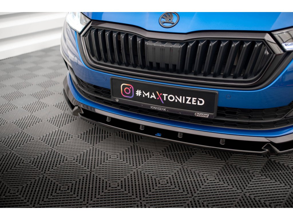 Maxton Design spoiler pod přední nárazník ver.1 pro vozidlo Škoda Octavia Mk4 . Povrchová úprava spoileru černý lesklý plast ABS.