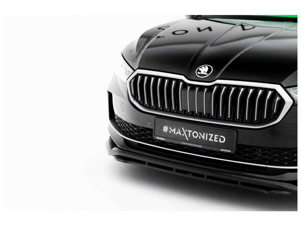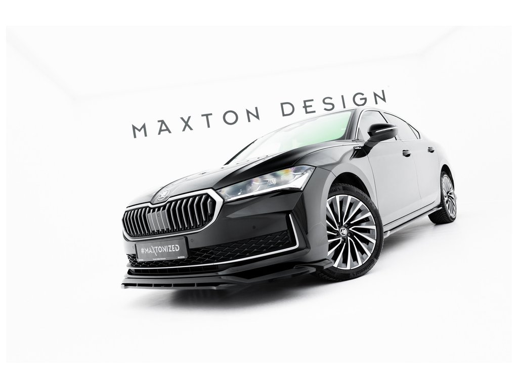 Maxton Design spoiler pod přední nárazník ver.1 pro vozidlo Škoda Superb Mk4 . Povrchová úprava spoileru černý lesklý plast ABS.