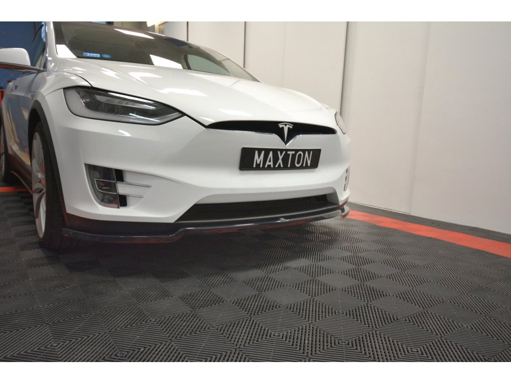 Maxton Design spoiler pod přední nárazník ver.1 pro vozidlo Tesla Model X Mk1 . Povrchová úprava spoileru černý lesklý plast ABS.