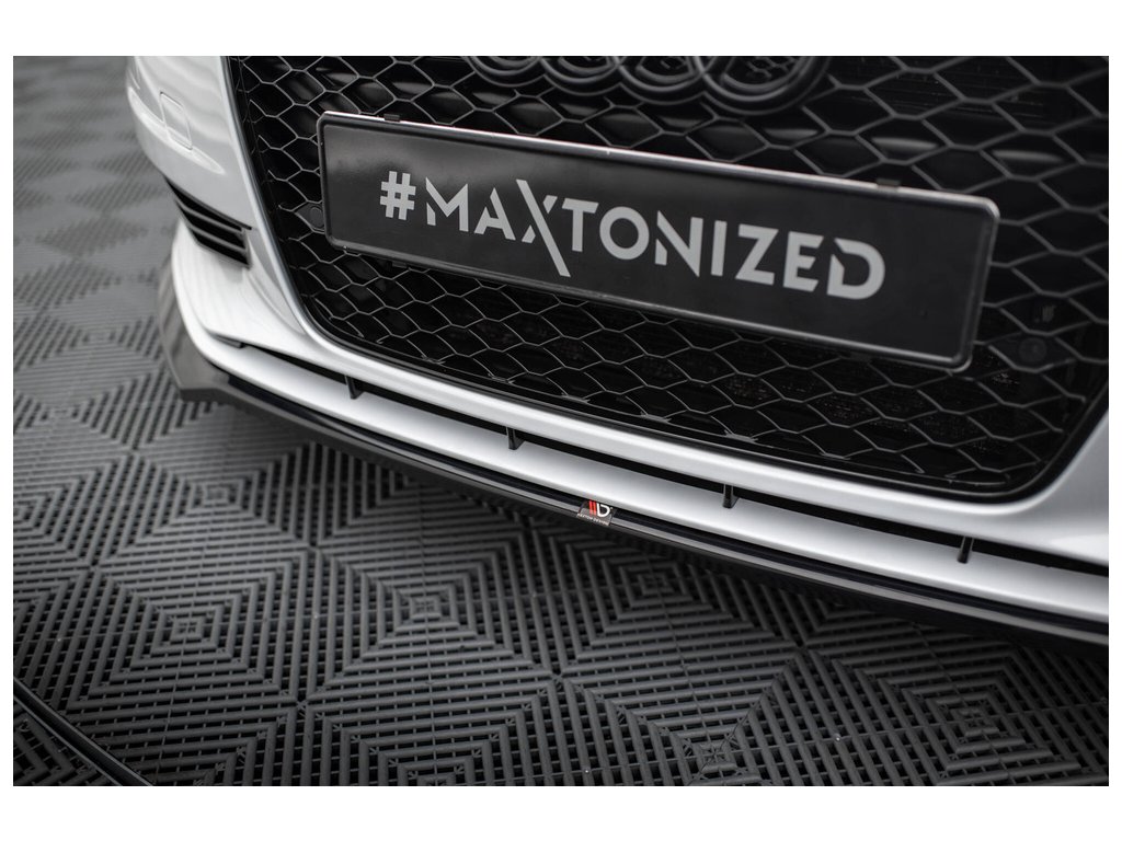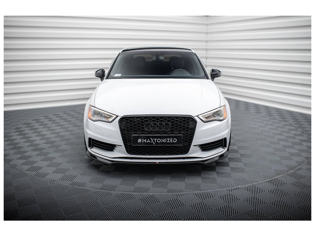 Maxton Design spoiler pod přední nárazník ver.2 pro vozidlo Audi A3 8V . Povrchová úprava spoileru černý lesklý plast ABS.