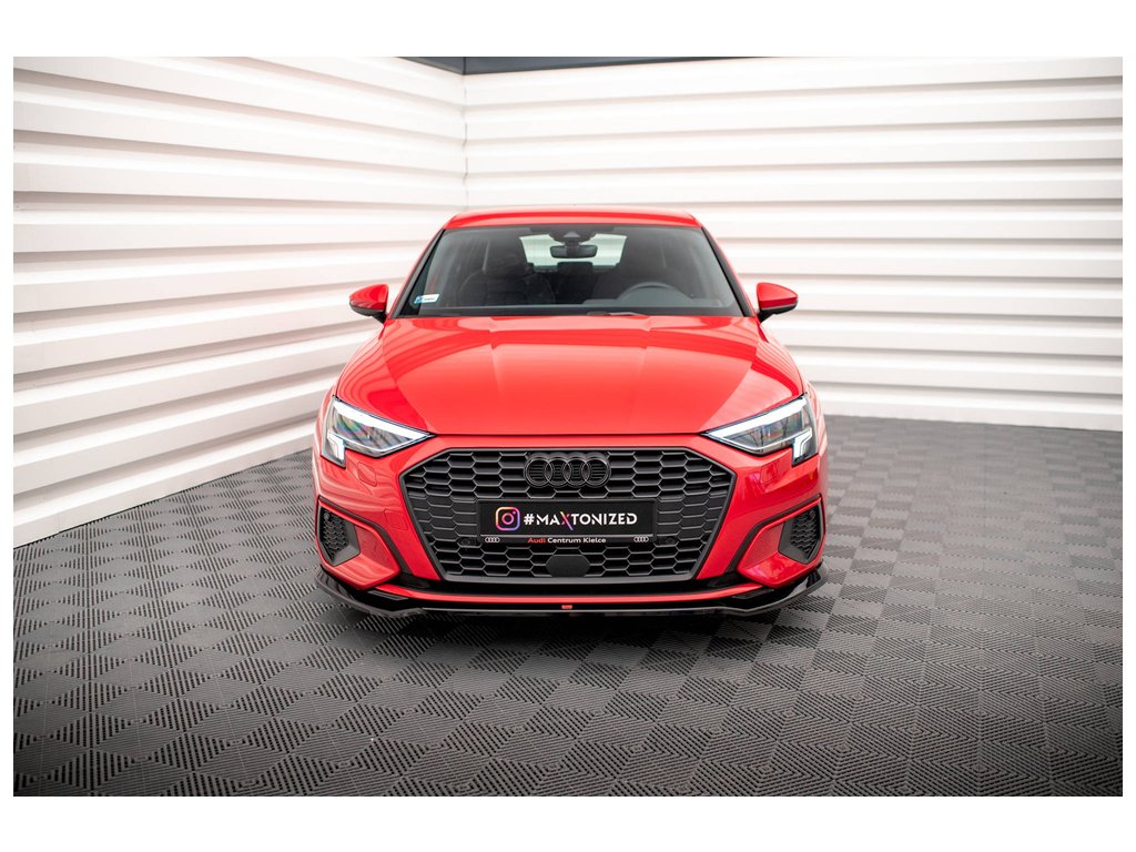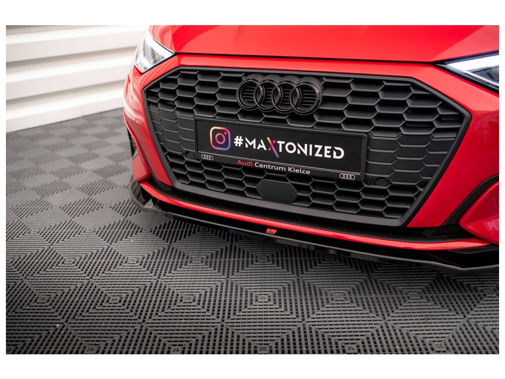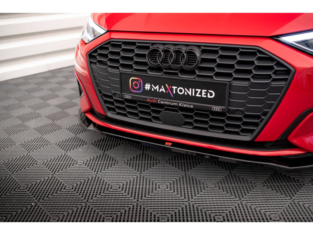 Maxton Design spoiler pod přední nárazník ver.2 pro vozidlo Audi A3 8Y . Povrchová úprava spoileru černý lesklý plast ABS.