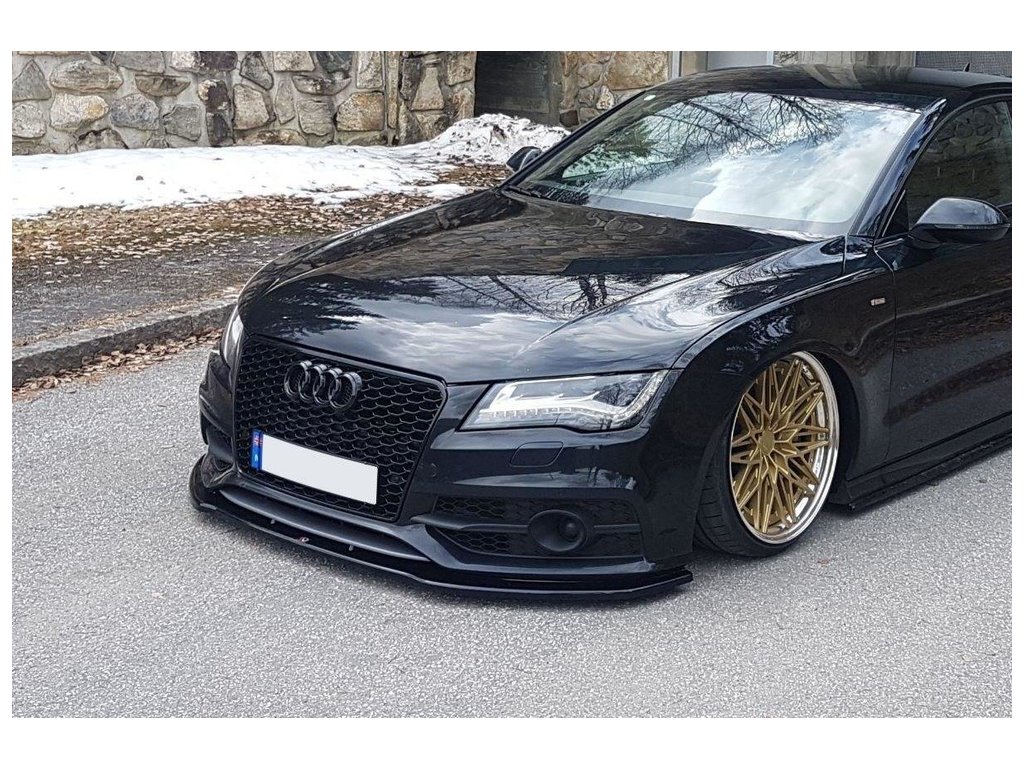 Přední spoiler V.2 Audi A7 Mk1 S-Line, povrchová úprava černý lesklý plast ABS.