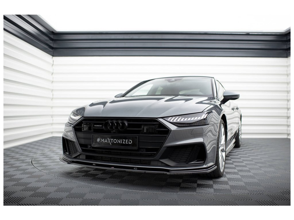 Maxton Design spoiler pod přední nárazník ver.2 pro vozidlo Audi A7 C8 S-Line . Povrchová úprava spoileru černý lesklý plast ABS.