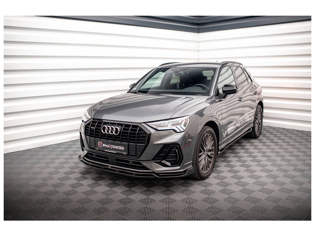Maxton Design spoiler pod přední nárazník ver.2 pro vozidlo Audi Q3 F3 S-Line . Povrchová úprava spoileru černý lesklý plast ABS.