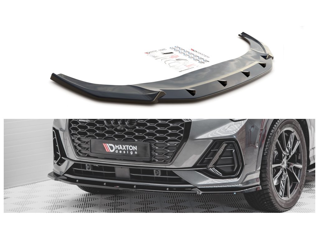 Maxton Design spoiler pod přední nárazník ver.2 pro vozidlo Audi Q3 Sportback S-Line . Povrchová úprava spoileru carbon-Look.