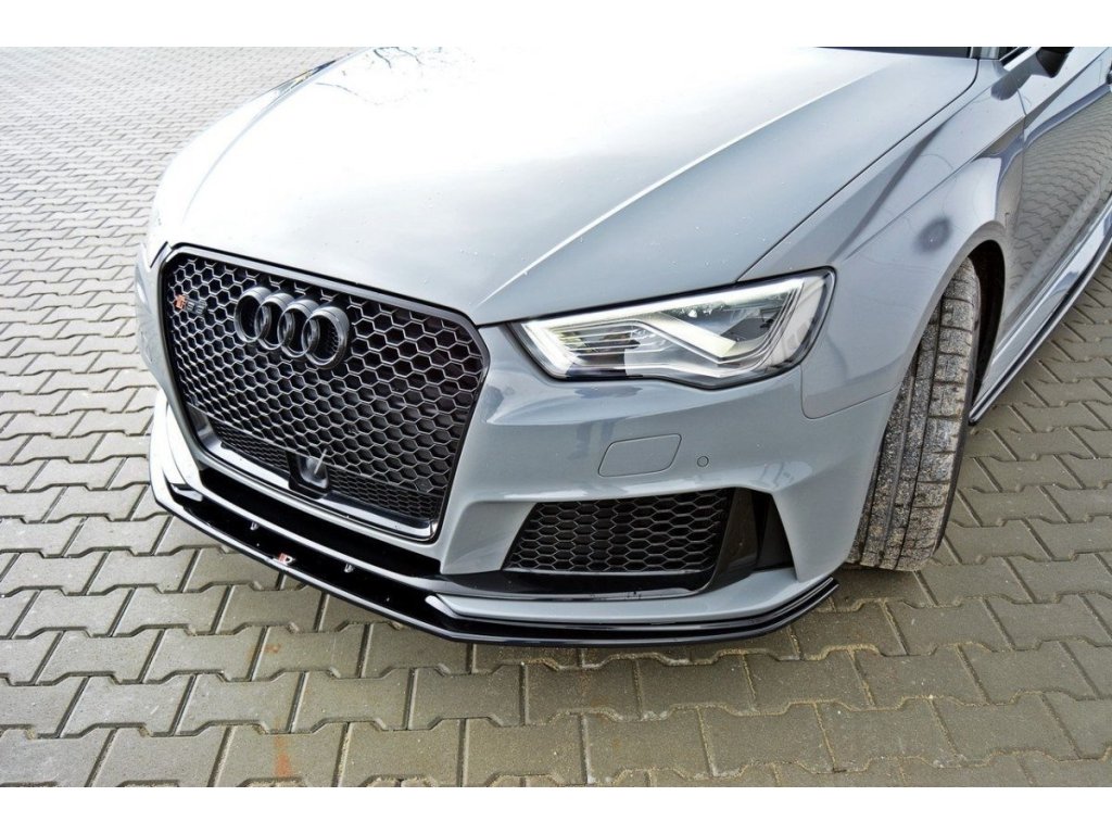 Maxton Design spoiler pod přední nárazník ver.2 pro vozidlo Audi RS3 8V . Povrchová úprava spoileru černý lesklý plast ABS.