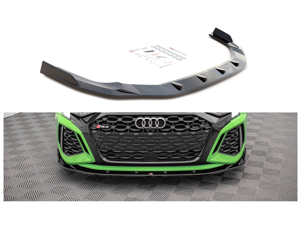 Maxton Design spoiler pod přední nárazník ver.2 pro vozidlo Audi RS3 8Y . Povrchová úprava spoileru carbon-Look.