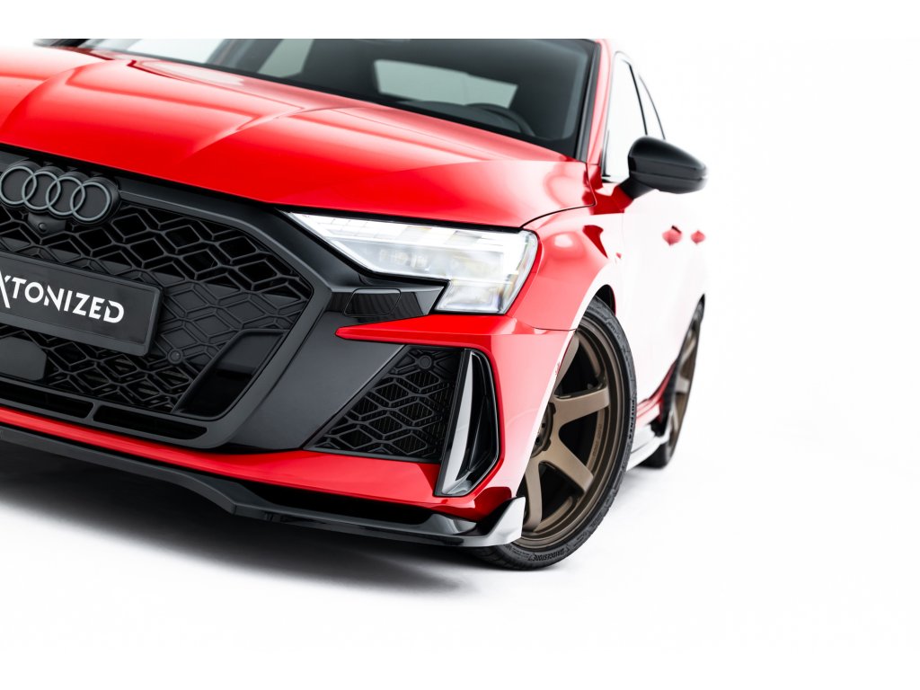 Maxton Design spoiler pod přední nárazník ver.2 pro vozidlo Audi RS3 8Y Facelift . Povrchová úprava spoileru černý lesklý plast ABS.