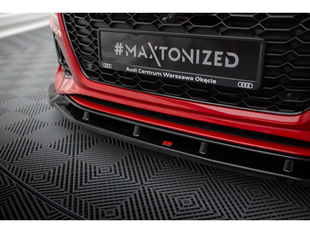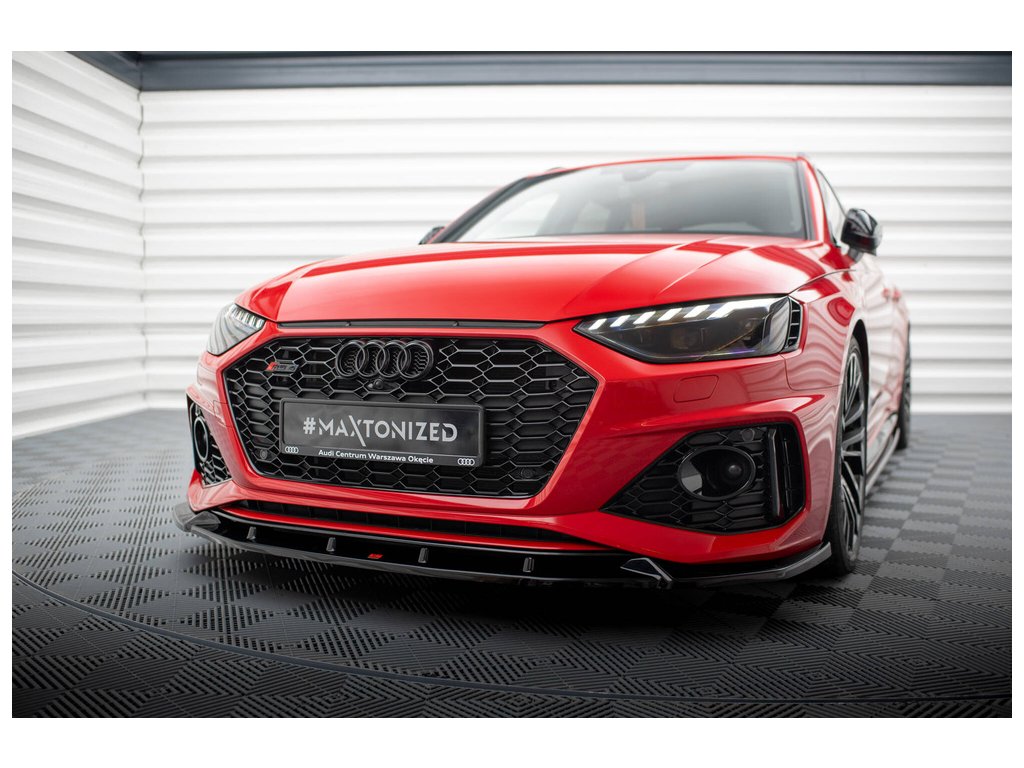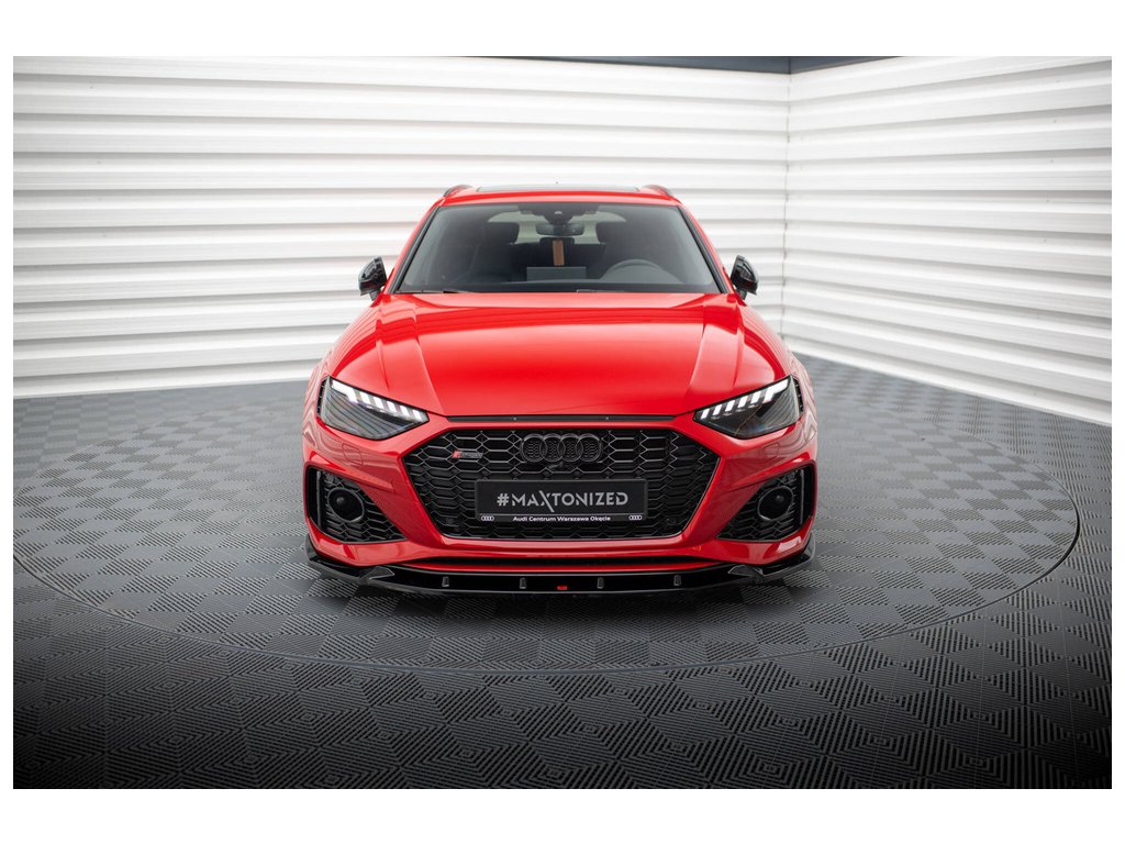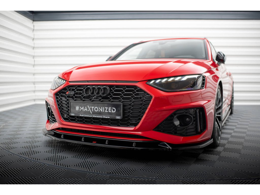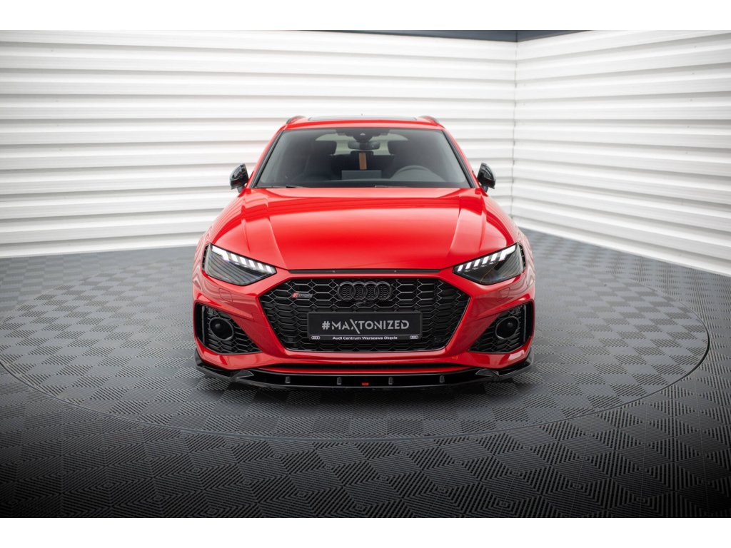 Maxton Design spoiler pod přední nárazník ver.2 pro vozidlo Audi RS4 B9 FL . Povrchová úprava spoileru černý lesklý plast ABS.