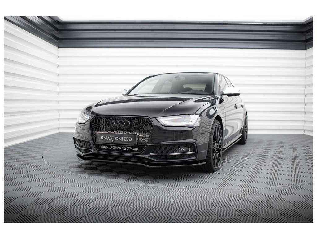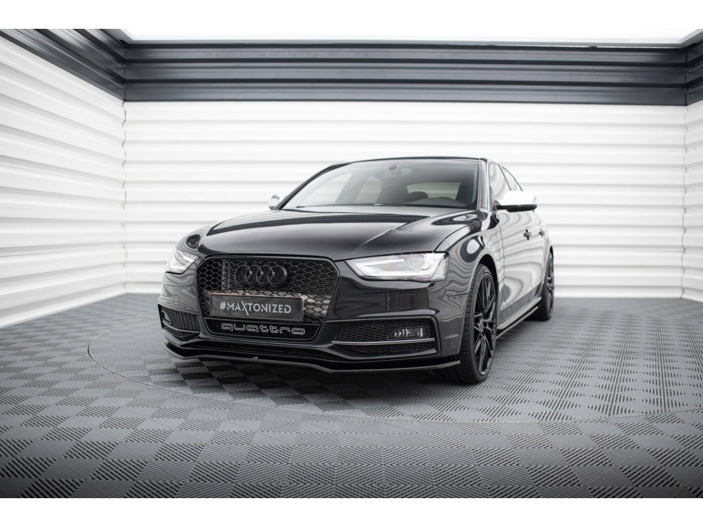 Maxton Design spoiler pod přední nárazník ver.2 pro vozidlo Audi S4 B8 Facelift. Povrchová úprava spoileru černý lesklý plast ABS.