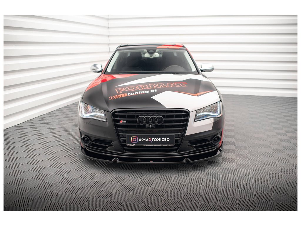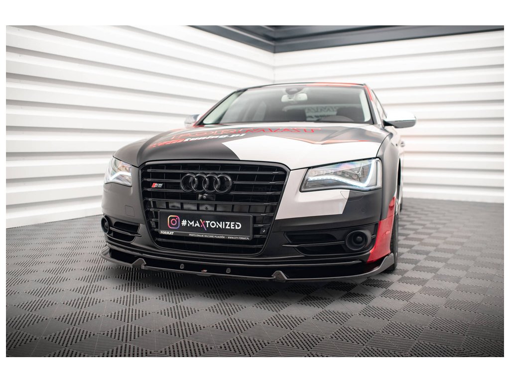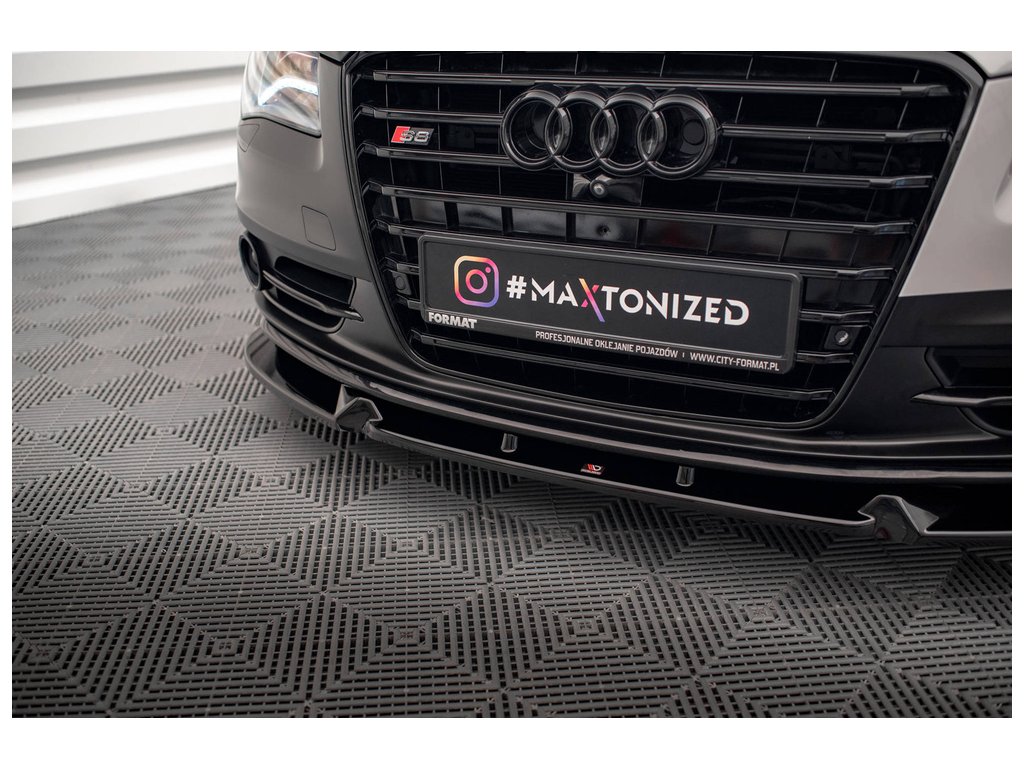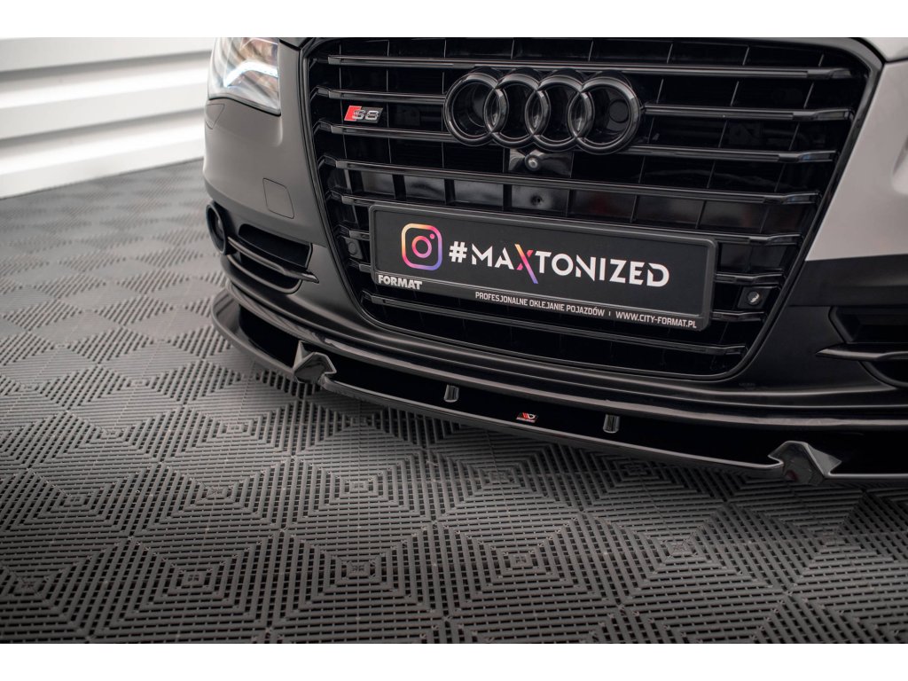 Maxton Design spoiler pod přední nárazník ver.2 pro vozidlo Audi S8 D4 . Povrchová úprava spoileru černý lesklý plast ABS.