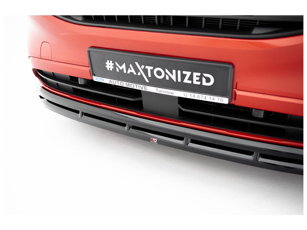 Maxton Design spoiler pod přední nárazník ver.2 pro Ford Transit Custom Mk2, černý lesklý plast ABS