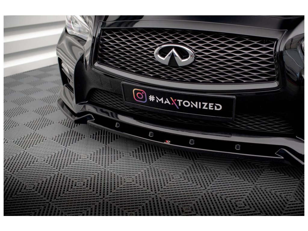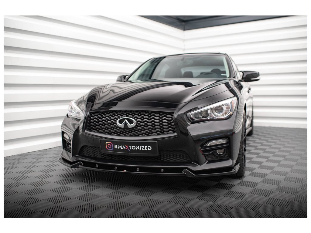 Maxton Design spoiler pod přední nárazník ver.2 pro vozidlo Infiniti Q50 S Mk1 . Povrchová úprava spoileru černý lesklý plast ABS.