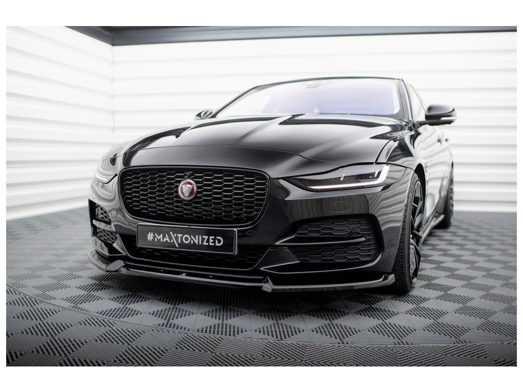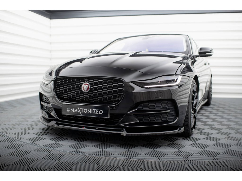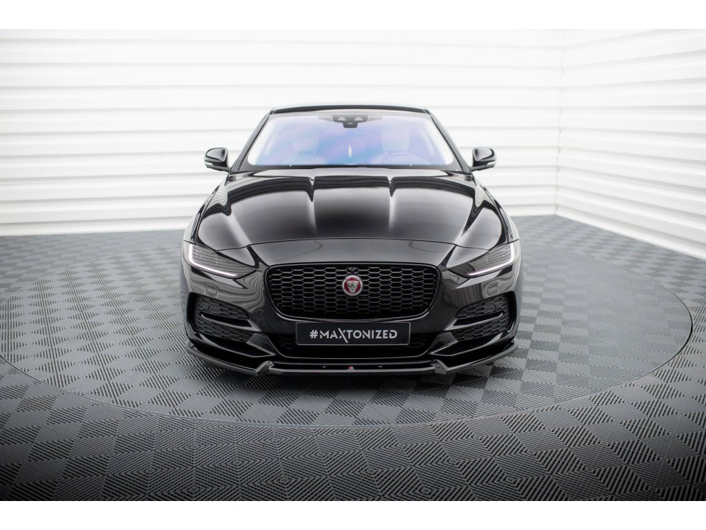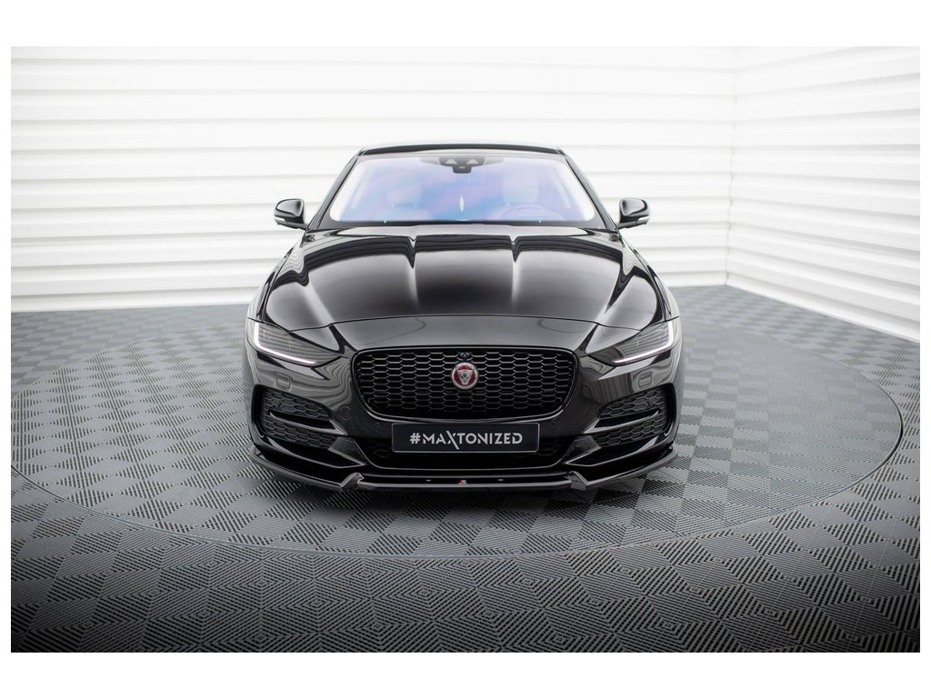 Maxton Design spoiler pod přední nárazník ver.2 pro vozidlo Jaguar XE Mk1 Facelift . Povrchová úprava spoileru černý lesklý plast ABS.