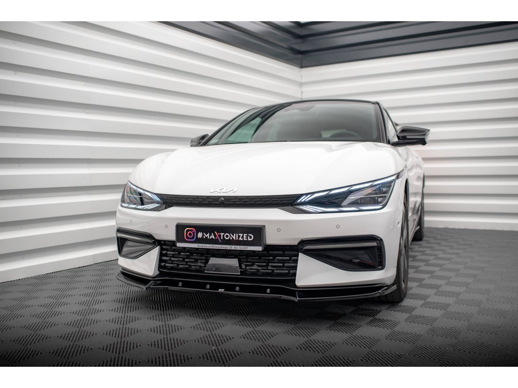 Maxton Design spoiler pod přední nárazník ver.2 pro vozidlo Kia EV6 Mk1 GT-Line . Povrchová úprava spoileru carbon-Look.
