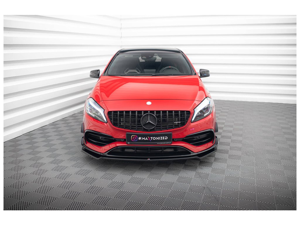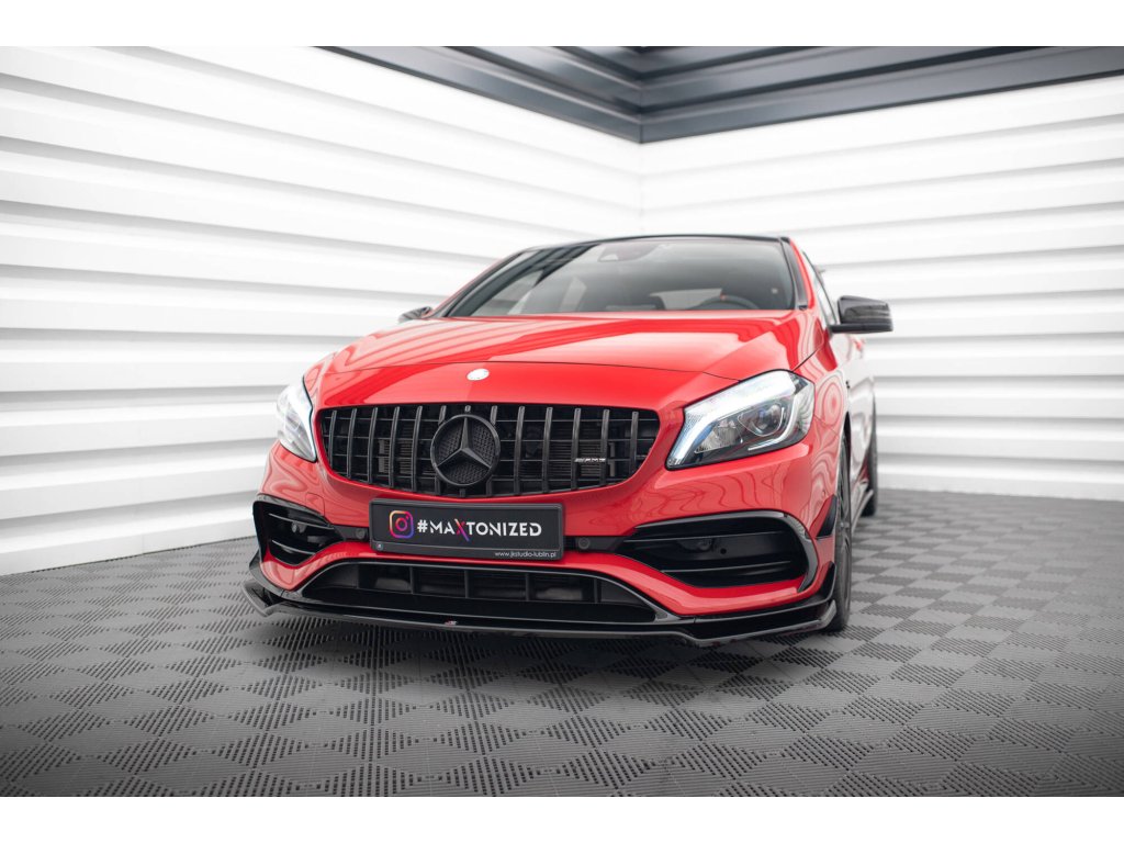 Přední spoiler V.2 Mercedes-Benz A45 Aero W176 Facelift, povrchová úprava černý lesklý plast ABS.