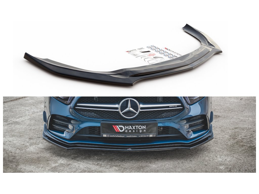 Maxton Design spoiler pod přední nárazník ver.2 pro vozidlo Mercedes třída A W177 A35 AMG Aero . Povrchová úprava spoileru carbon-Look.