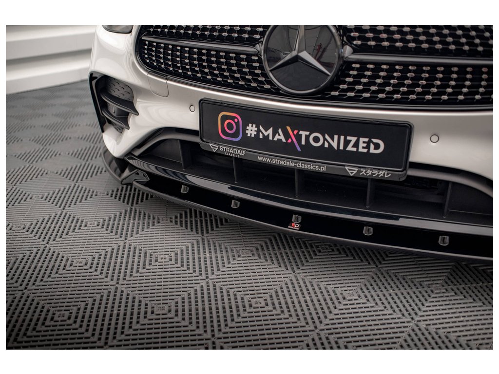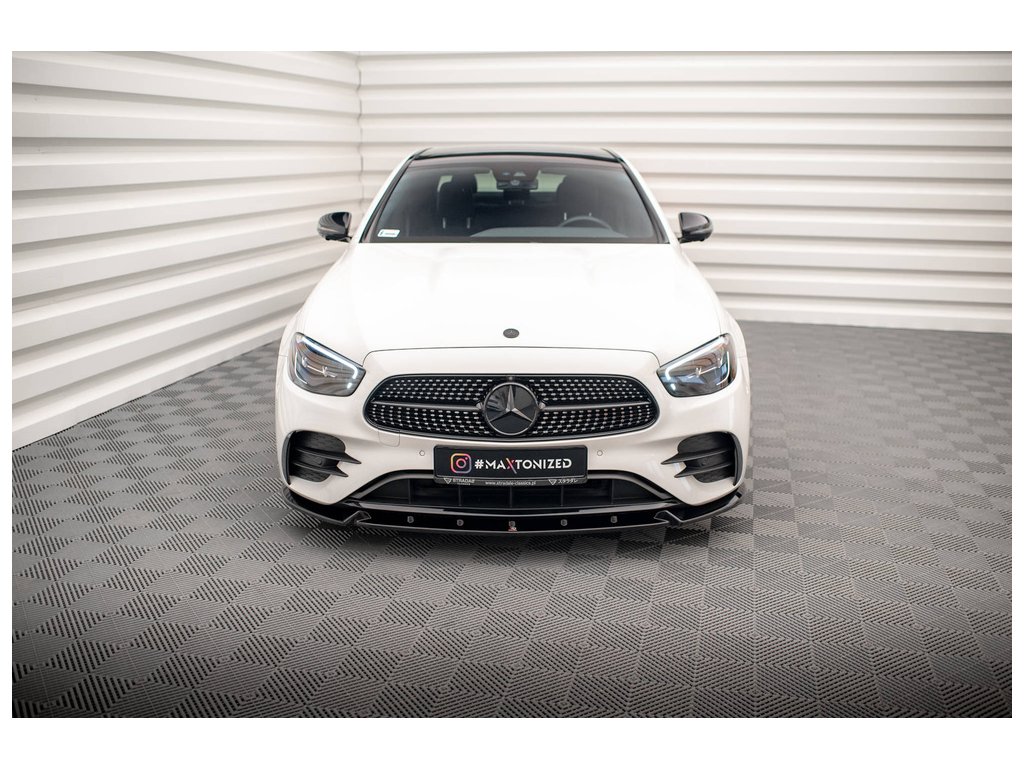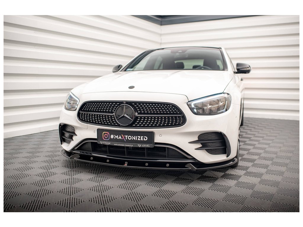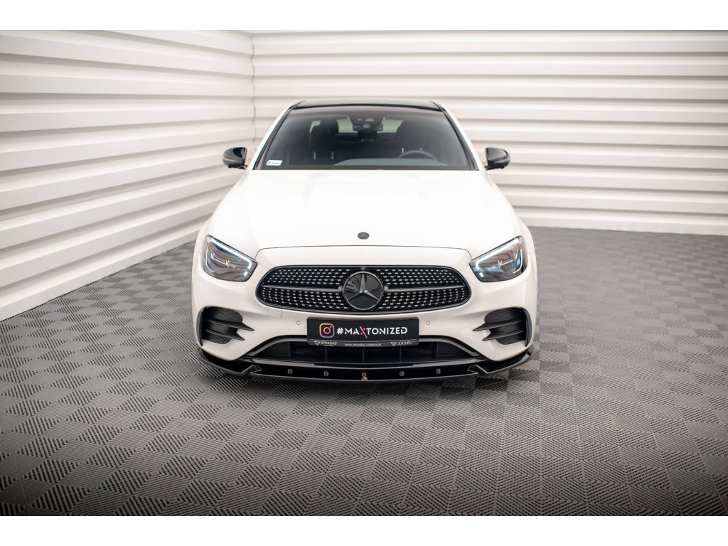 Maxton Design spoiler pod přední nárazník ver.2 pro vozidlo Mercedes třída E W213 Facelift/AMG-Line/Sedan . Povrchová úprava spoileru černý lesklý plast ABS.
