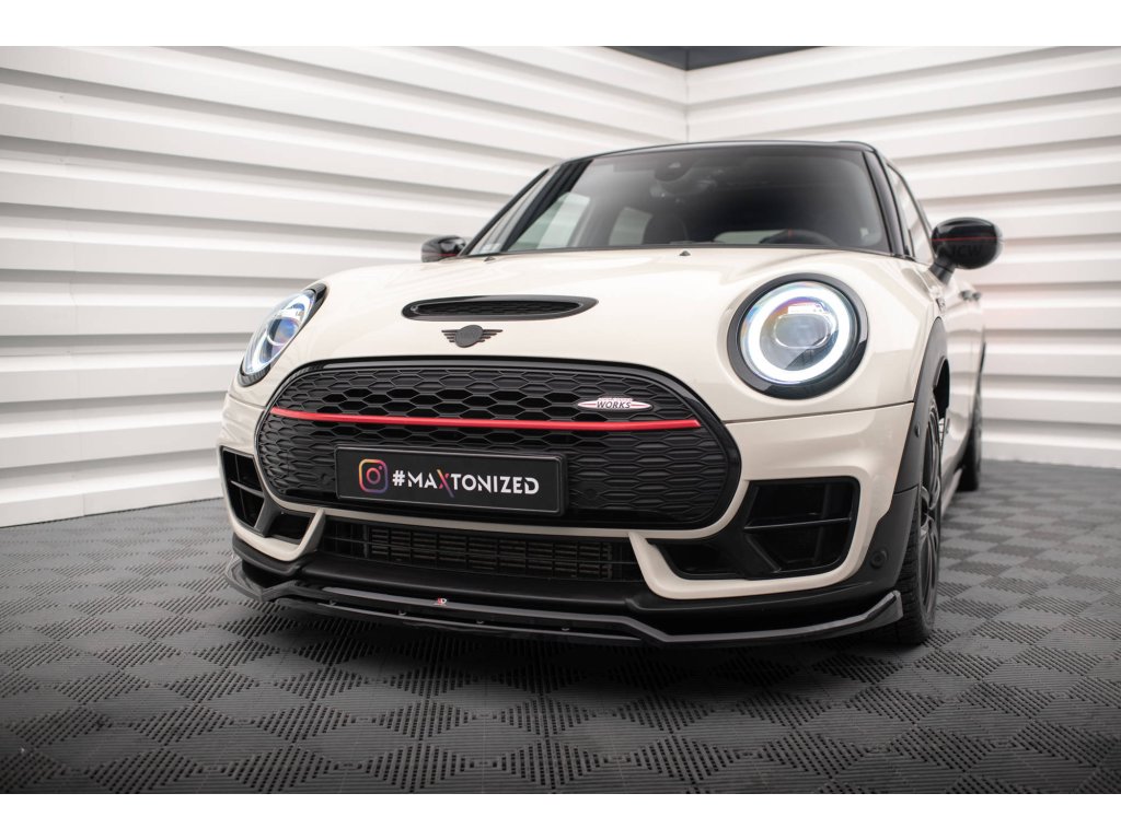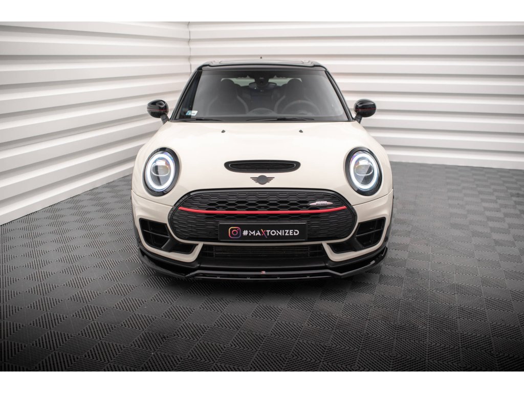 Maxton Design spoiler pod přední nárazník ver.2 pro vozidlo Mini Clubman F54 Facelift John Cooper Works . Povrchová úprava spoileru carbon-Look.