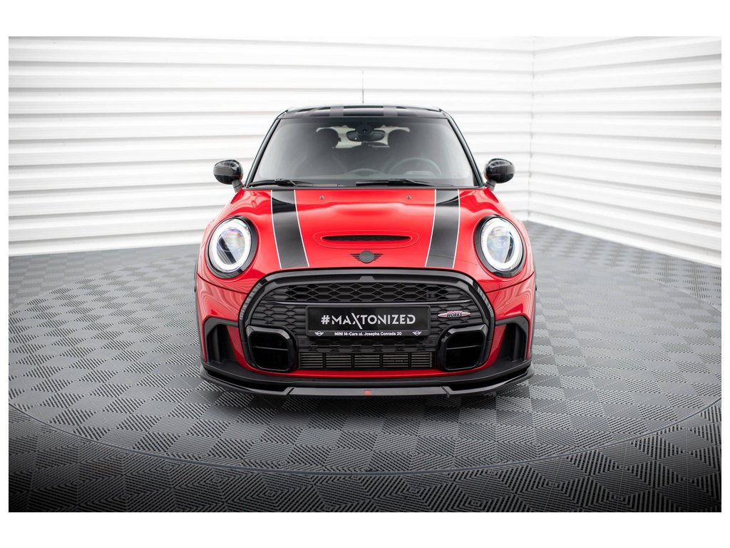 Maxton Design spoiler pod přední nárazník ver.2 pro vozidlo Mini Cooper F56 JCW Facelift . Povrchová úprava spoileru černý lesklý plast ABS.