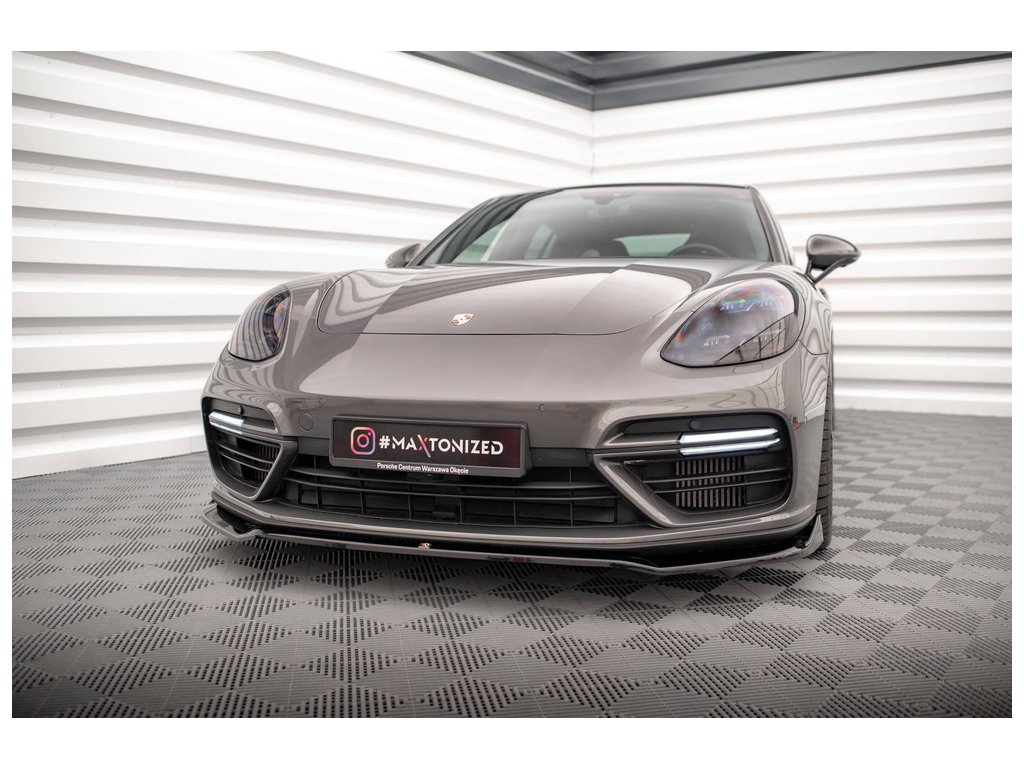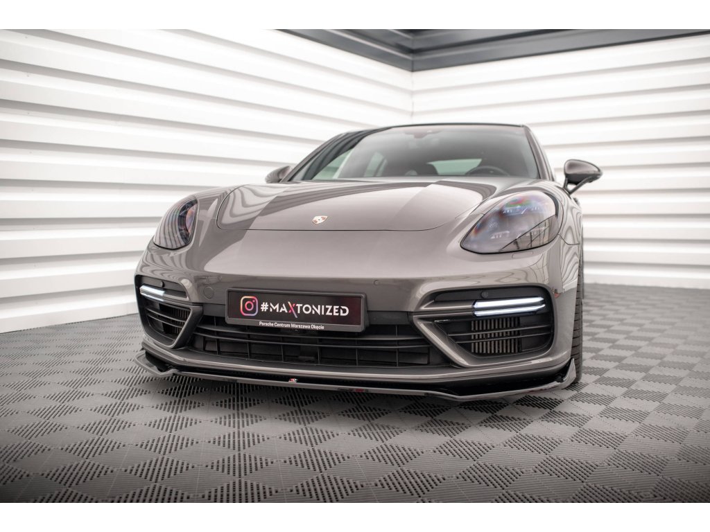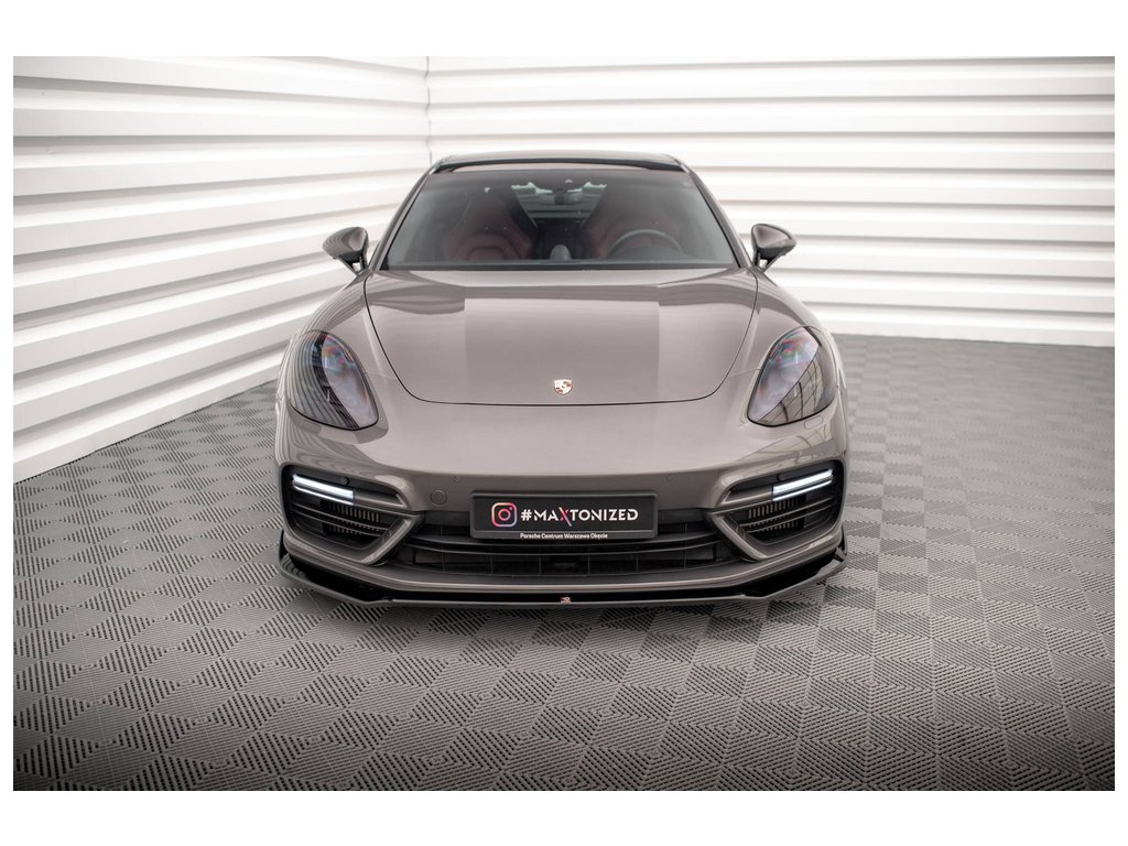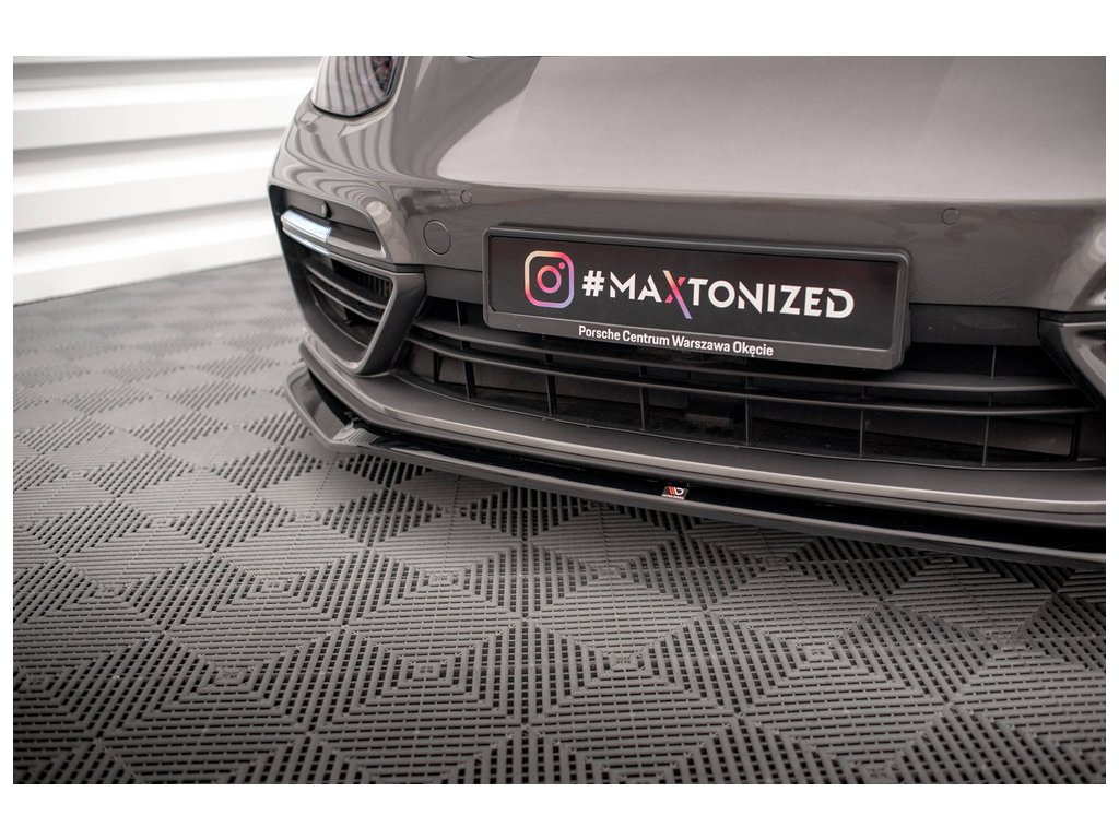 Maxton Design spoiler pod přední nárazník ver.2 pro vozidlo Porsche Panamera 971 E-Hybrid . Povrchová úprava spoileru černý lesklý plast ABS.