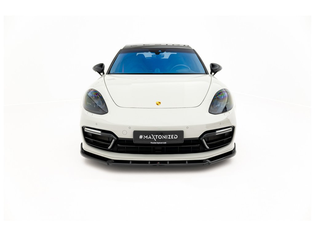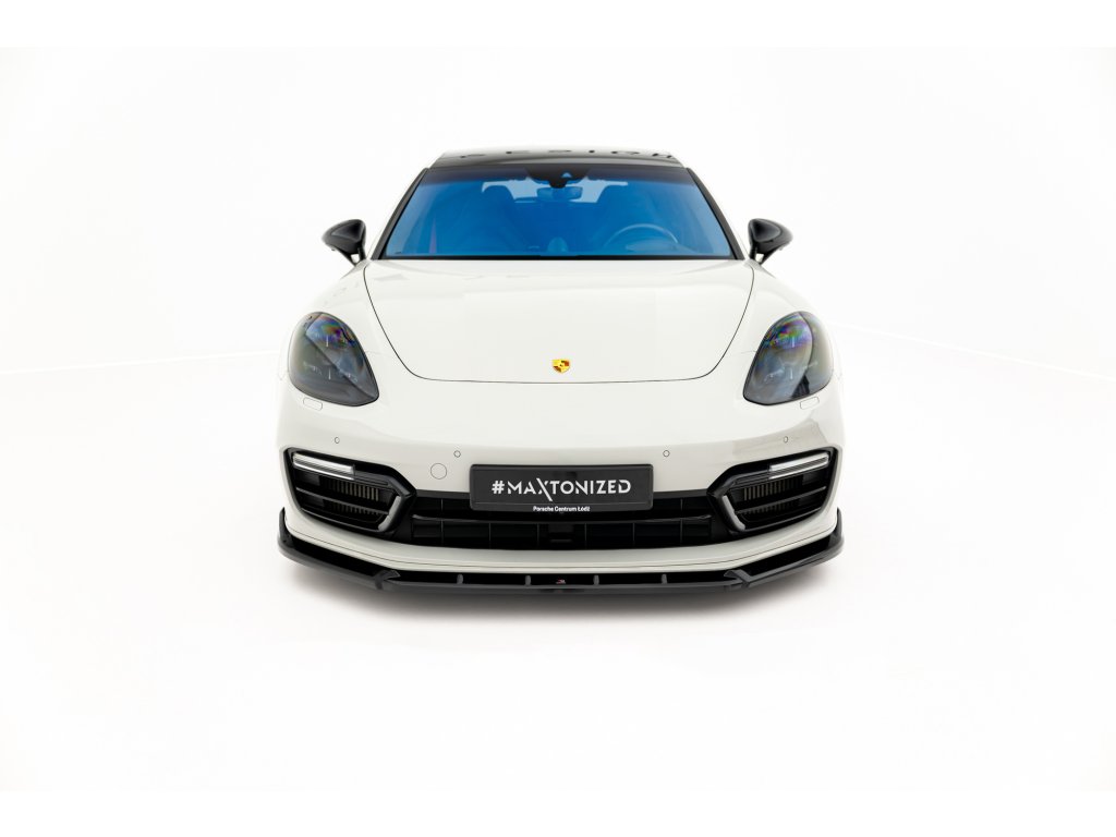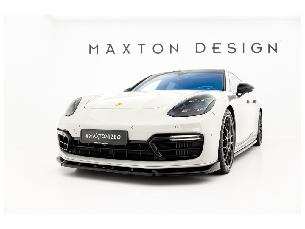 Maxton Design spoiler pod přední nárazník ver.2 pro vozidlo Porsche Panamera 971 Facelift E-Hybrid . Povrchová úprava spoileru černý lesklý plast ABS.