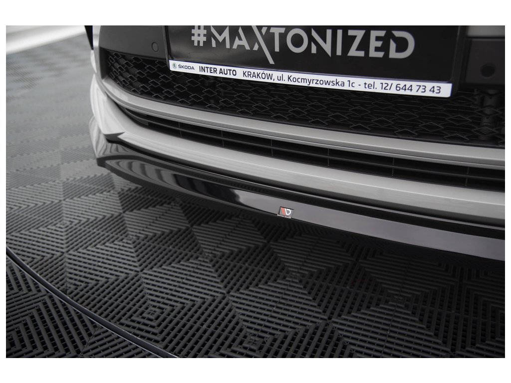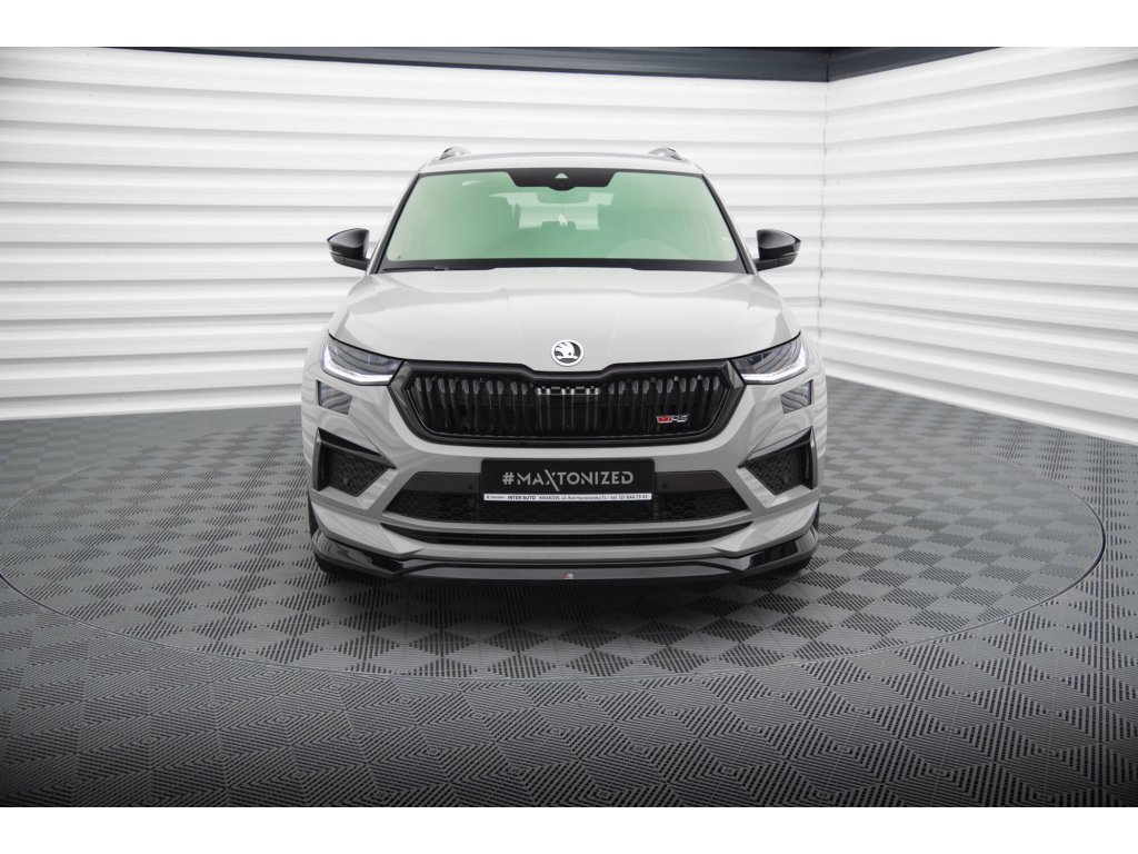 Maxton Design spoiler pod přední nárazník ver.2 pro vozidlo Škoda Kodiaq RS Facelift . Povrchová úprava spoileru černý lesklý plast ABS.