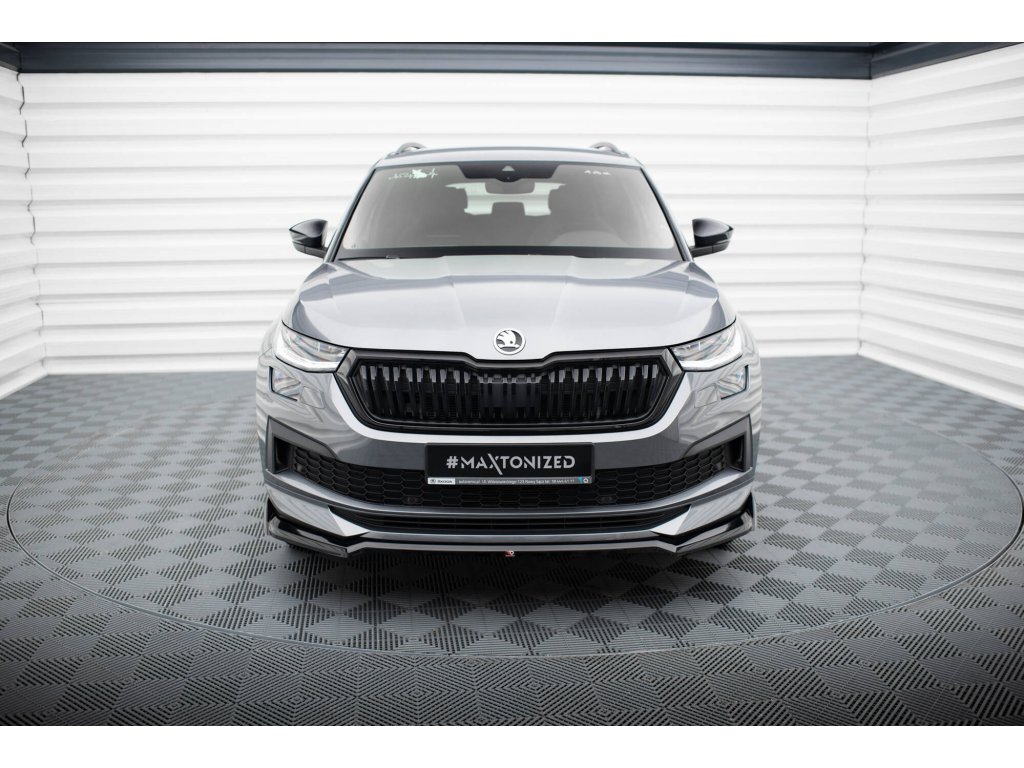 Maxton Design spoiler pod přední nárazník ver.2 pro vozidlo Škoda Kodiaq Sportline Facelift . Povrchová úprava spoileru černý lesklý plast ABS.