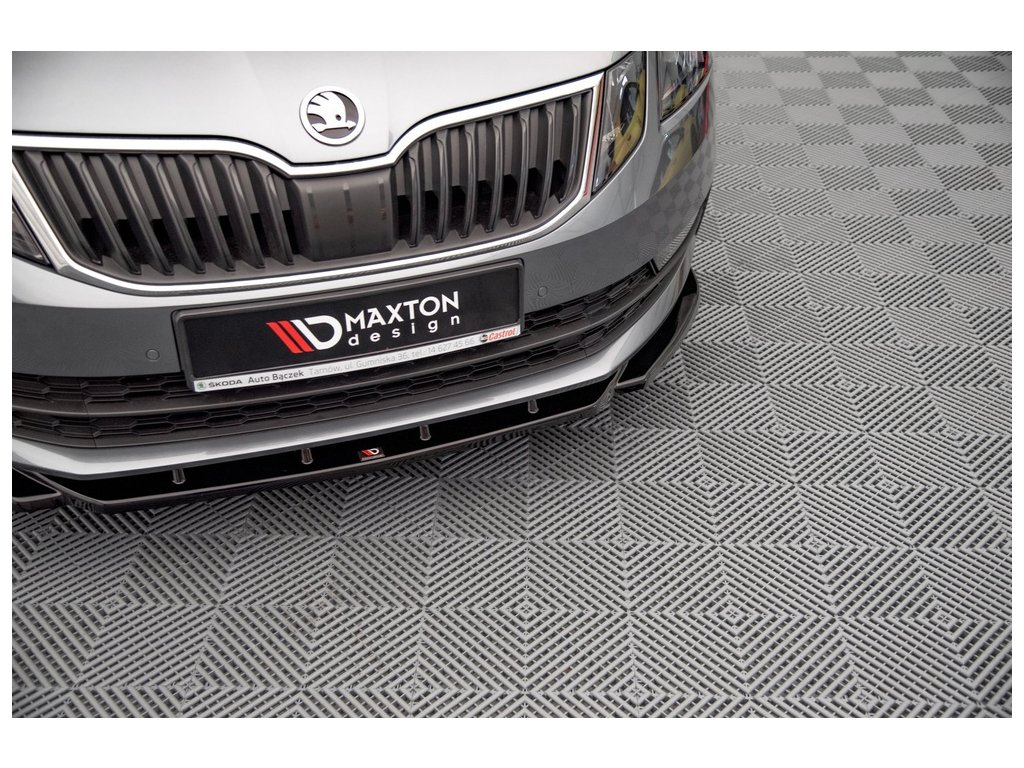 Maxton Design spoiler pod přední nárazník ver.2 pro vozidlo Škoda Octavia Mk3 Facelift . Povrchová úprava spoileru černý lesklý plast ABS.