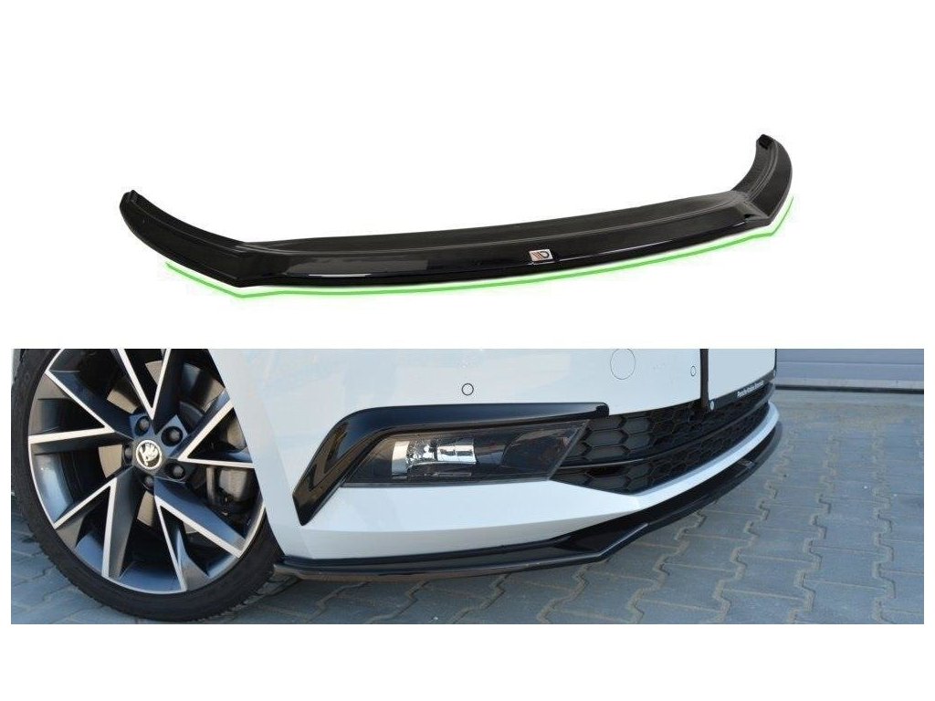 Maxton Design spoiler pod přední nárazník ver.2 pro vozidlo Škoda Superb Mk3 . Povrchová úprava spoileru carbon-Look.