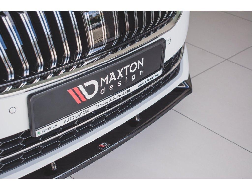 Maxton Design spoiler pod přední nárazník ver.2 pro vozidlo Škoda Superb Mk3 FL Facelift. Povrchová úprava spoileru carbon-Look.