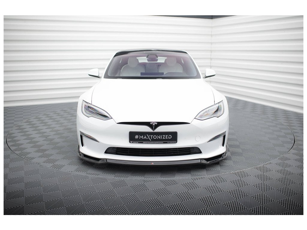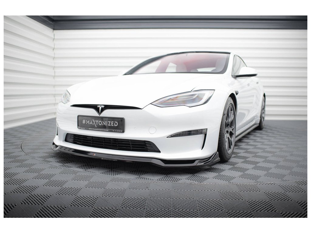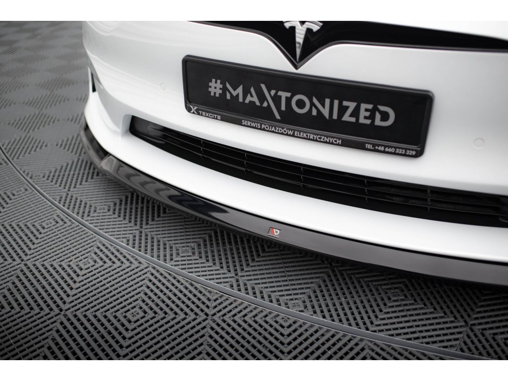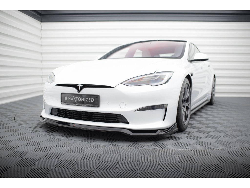 Maxton Design spoiler pod přední nárazník ver.2 pro vozidlo Tesla Model S Plaid Mk1 Facelift . Povrchová úprava spoileru černý lesklý plast ABS.
