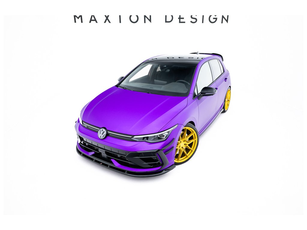 Maxton Design spoiler pod přední nárazník ver.2 pro vozidlo Volkswagen Golf R Mk8 Facelift . Povrchová úprava spoileru černý lesklý plast ABS.