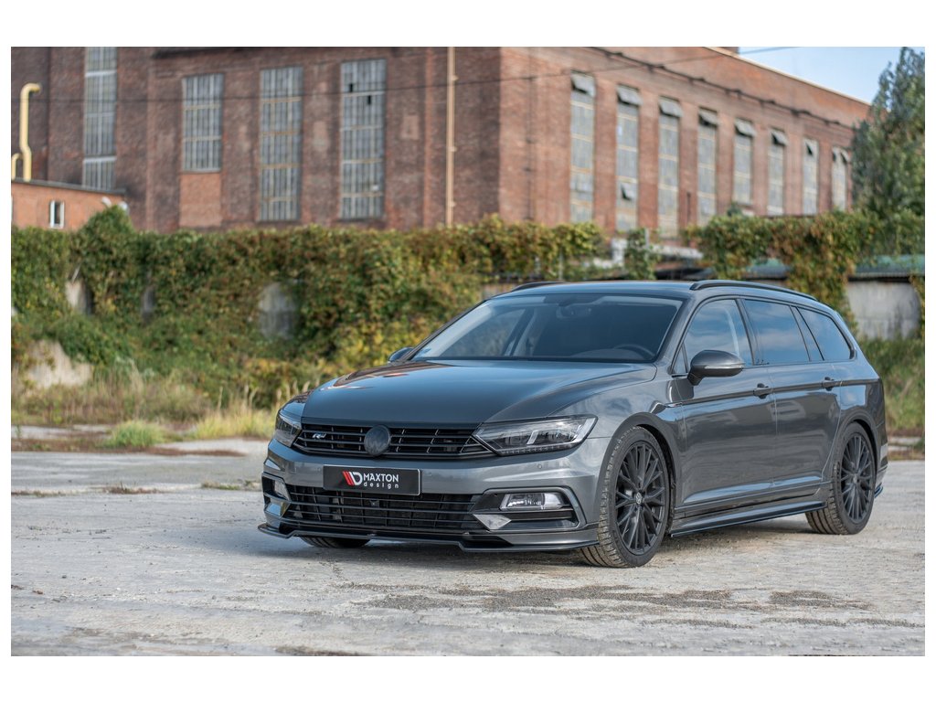 Maxton Design spoiler pod přední nárazník ver.2 pro Volkswagen Passat Mk8 (B8), černý lesklý plast ABS, R-Line