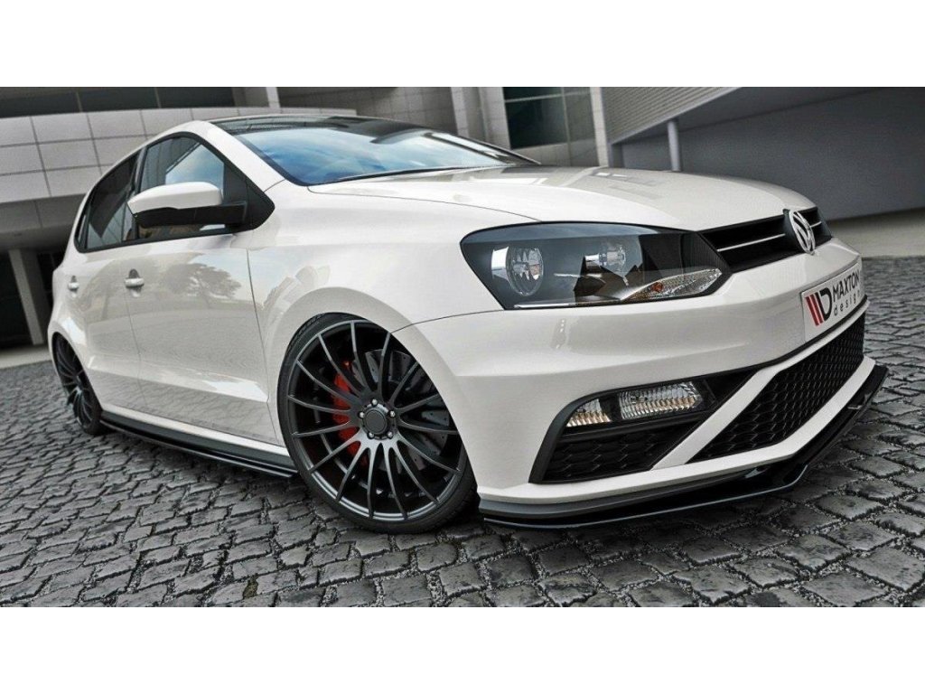 Maxton Design spoiler pod přední nárazník ver.2 pro vozidlo Volkswagen Polo GTI Mk5 Facelift . Povrchová úprava spoileru carbon-Look.