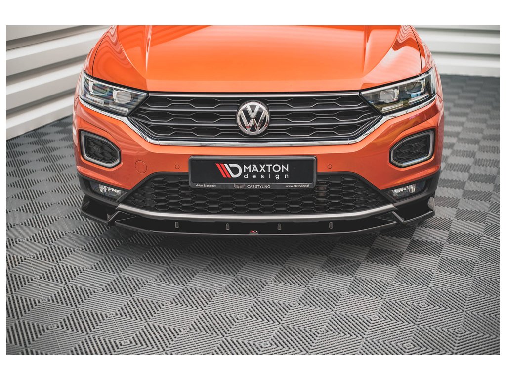 Maxton Design spoiler pod přední nárazník ver.2 pro vozidlo Volkswagen T-roc Mk1 . Povrchová úprava spoileru černý lesklý plast ABS.