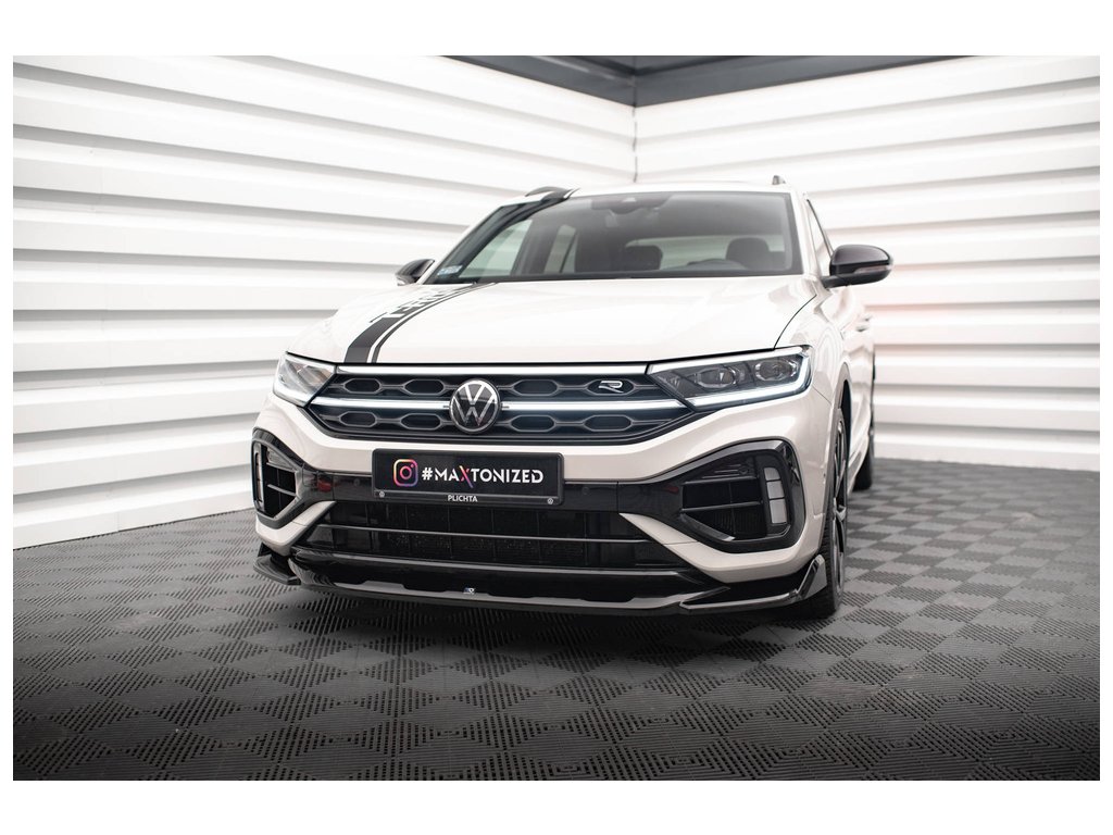 Maxton Design spoiler pod přední nárazník ver.2 pro vozidlo Volkswagen T-roc R Mk1 . Povrchová úprava spoileru černý lesklý plast ABS.