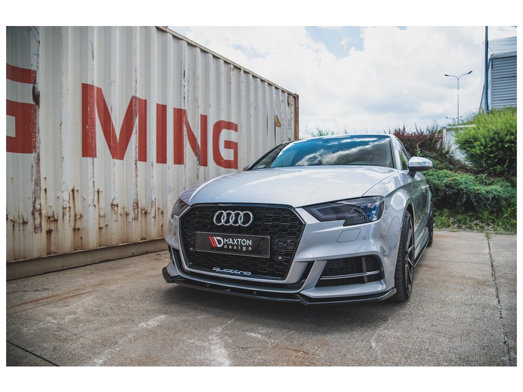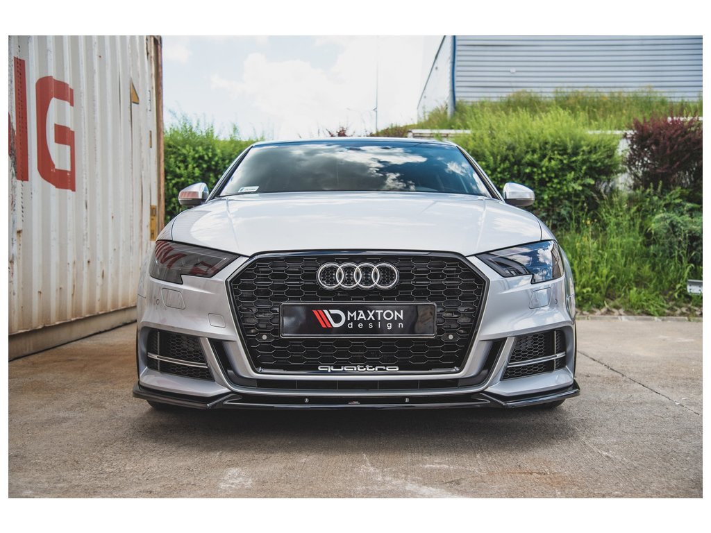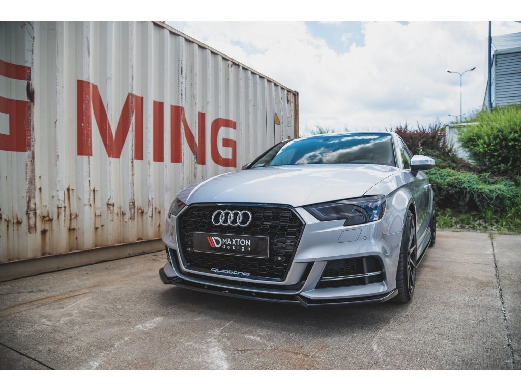 Maxton Design spoiler pod přední nárazník ver.3 pro vozidlo Audi A3, S3 8V FL . Povrchová úprava spoileru černý lesklý plast ABS.