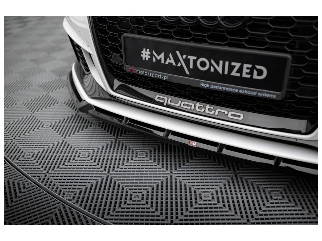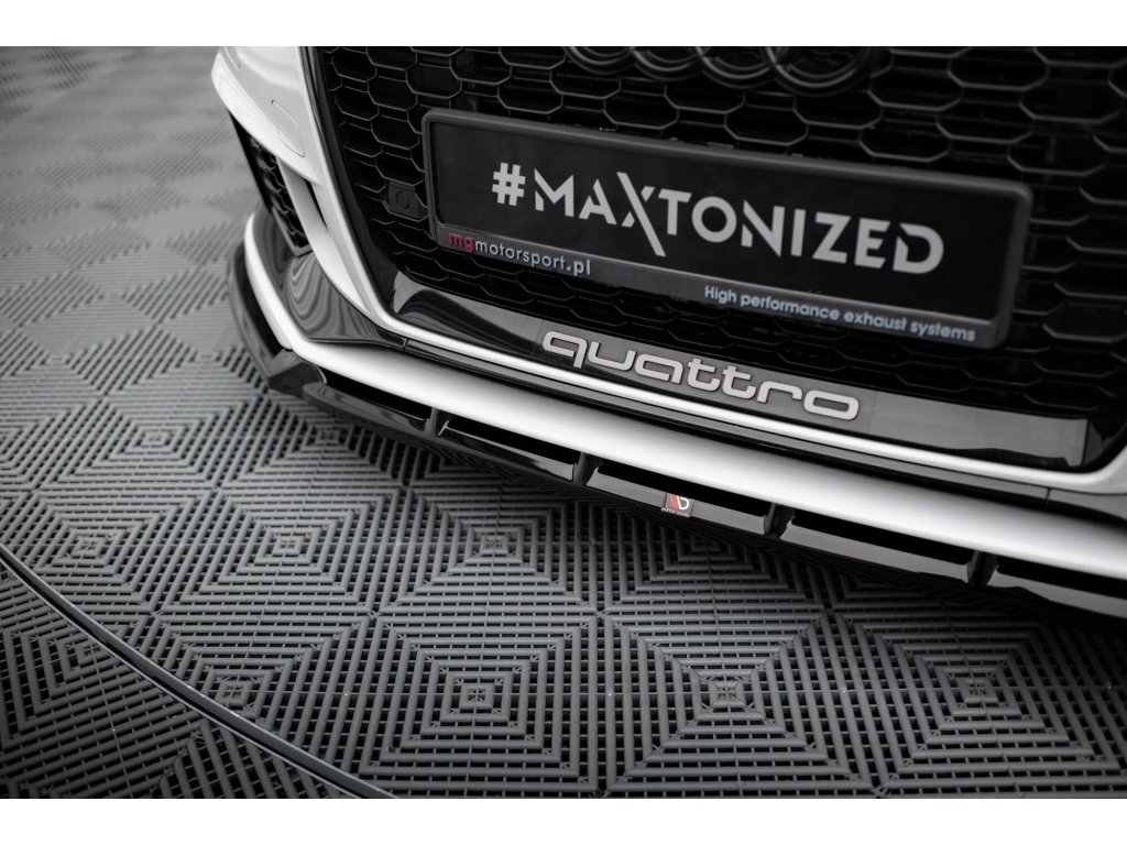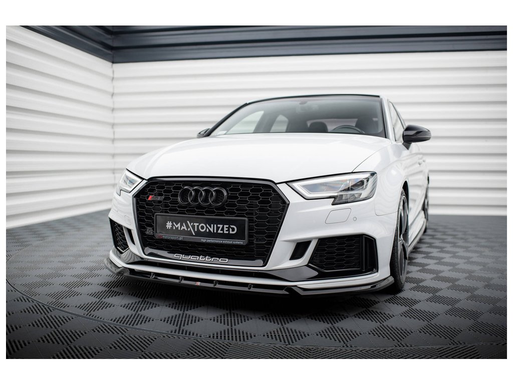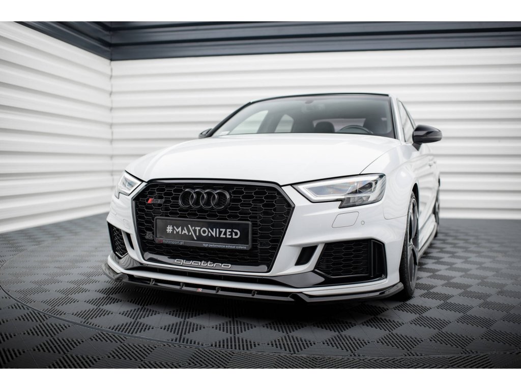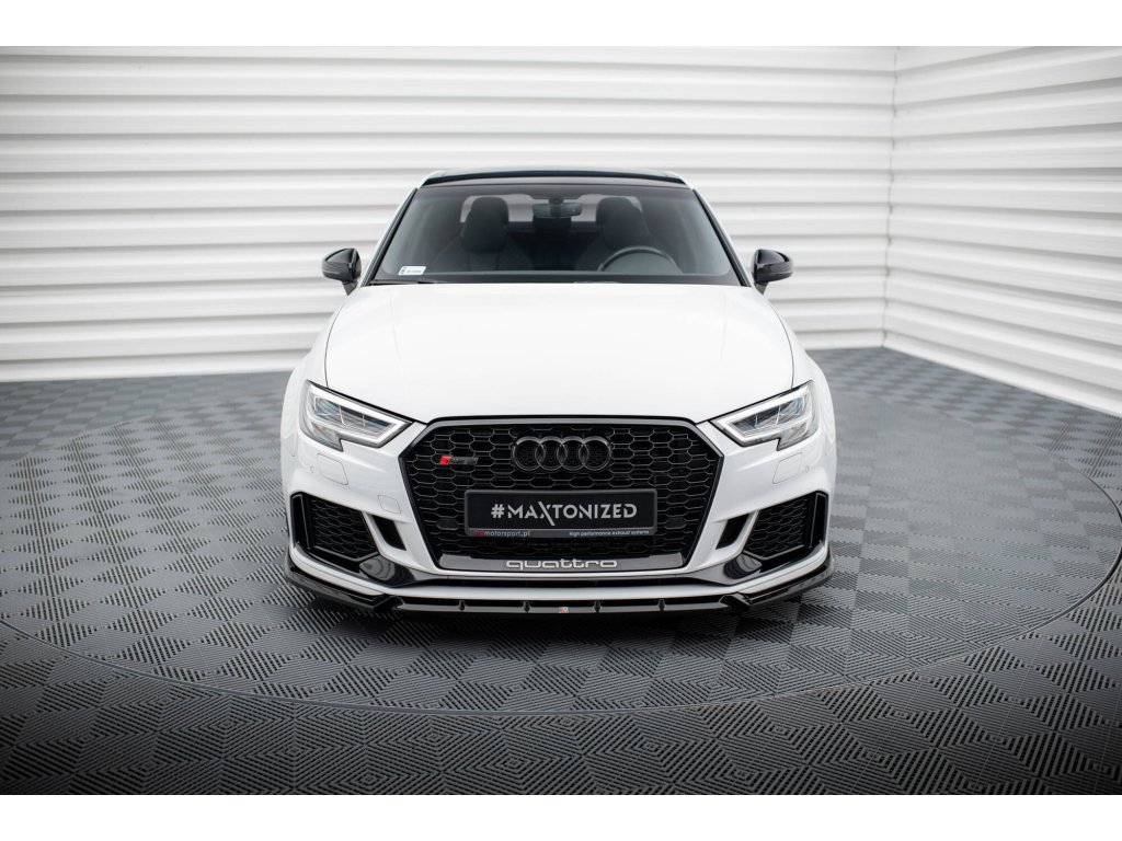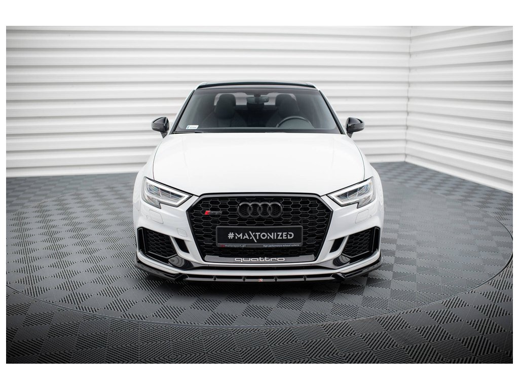 Maxton Design spoiler pod přední nárazník ver.3 pro vozidlo Audi RS3 8V Facelift . Povrchová úprava spoileru černý lesklý plast ABS.